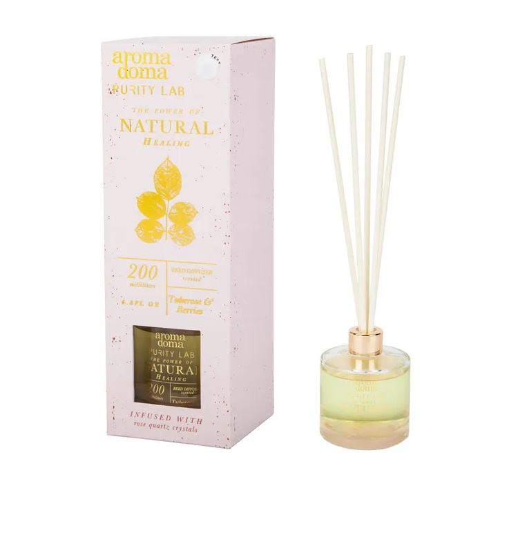 В комплект входит сам диффузор и фибровые палочки, Для поддержания интенсивности рекомендуется переворачивать палочки каждые 2 недели. Стеклянный флакон с розовым кварцем не только источает приятный аромат, но и выглядит как стильный элемент декора.