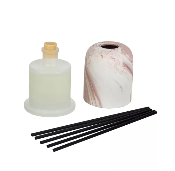 Элегантный аромадиффузор станет неотъемлемой частью вашего интерьера, добавив тепло и уют. Он состоит из стеклянной колбы и керамической крышки, что придает ему стильный и современный вид. В комплекте также идут 5 палочек из фиброволокна, которые эффективно распространяют аромат по всему помещению.