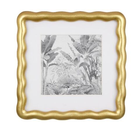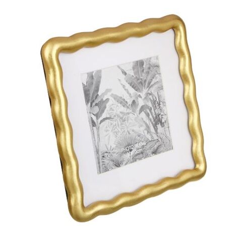 Блестящая золотая фоторамка — идеальный способ сохранить свои любимые воспоминания. Пластичные линии в дизайне фоторамки добавят гламура и изящности в ваш интерьер. Фоторамка выполнена из смолы, прочного и нестандартного материала.