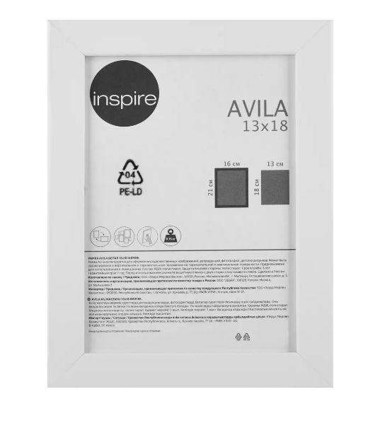 Рамка Inspire Avila предназначена для оформления фотографий, вышивки. Подходит для изображений размером 13 х 18 см. Размещается как вертикально, так и горизонтально. Может крепиться к стене или устанавливаться на ровной поверхности — на полке, столе или в шкафу.