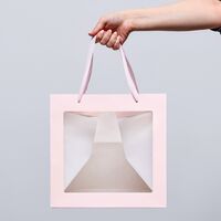 ГИФТ, пакет подарочный с окном, 30х20х16 см, розовый