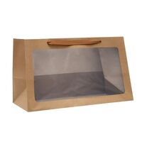 ГИФТ, пакет подарочный горизонтальный, крафт, с окном, 50х30х25 см, бежевый