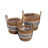 ИНГА, набор кашпо, 3 шт, плетеные, серая полосы