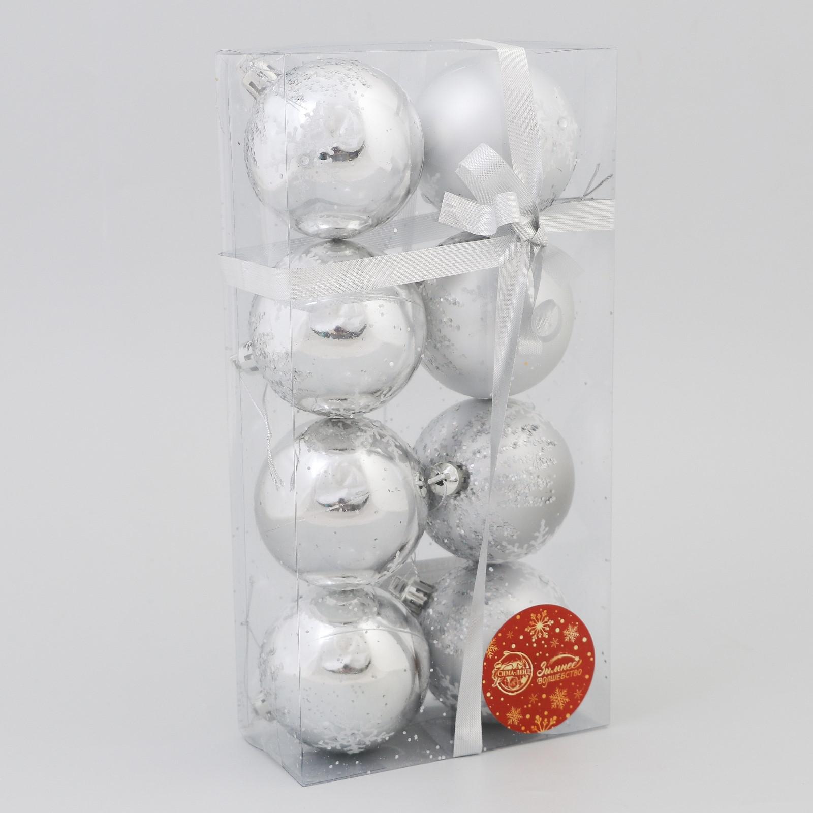 "Герда", набор шаров пластик d-6 см, 8 шт, серебро