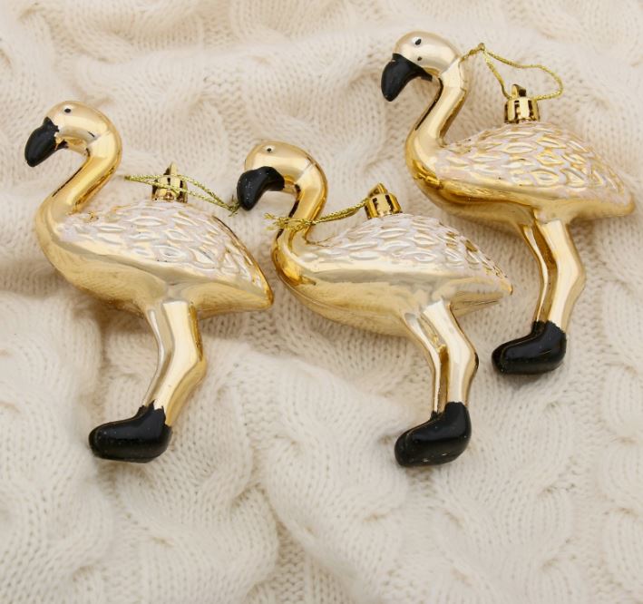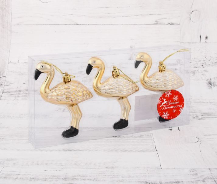 ВИНТЕР Фламинго, украшение елочное, 3шт, золото