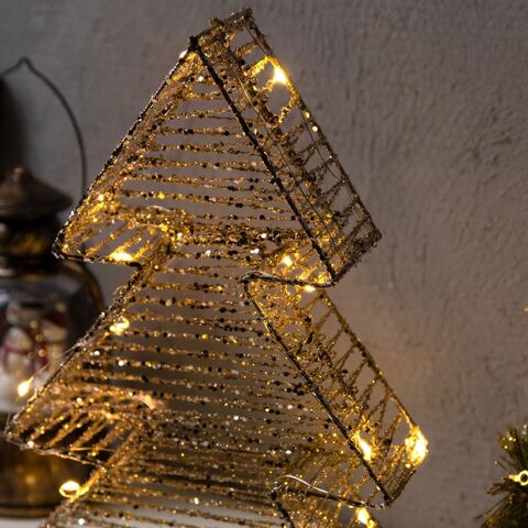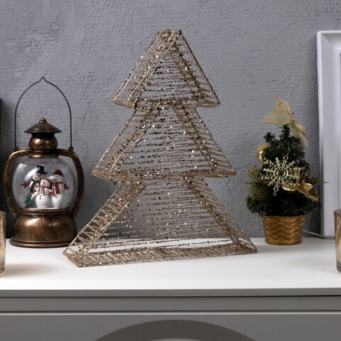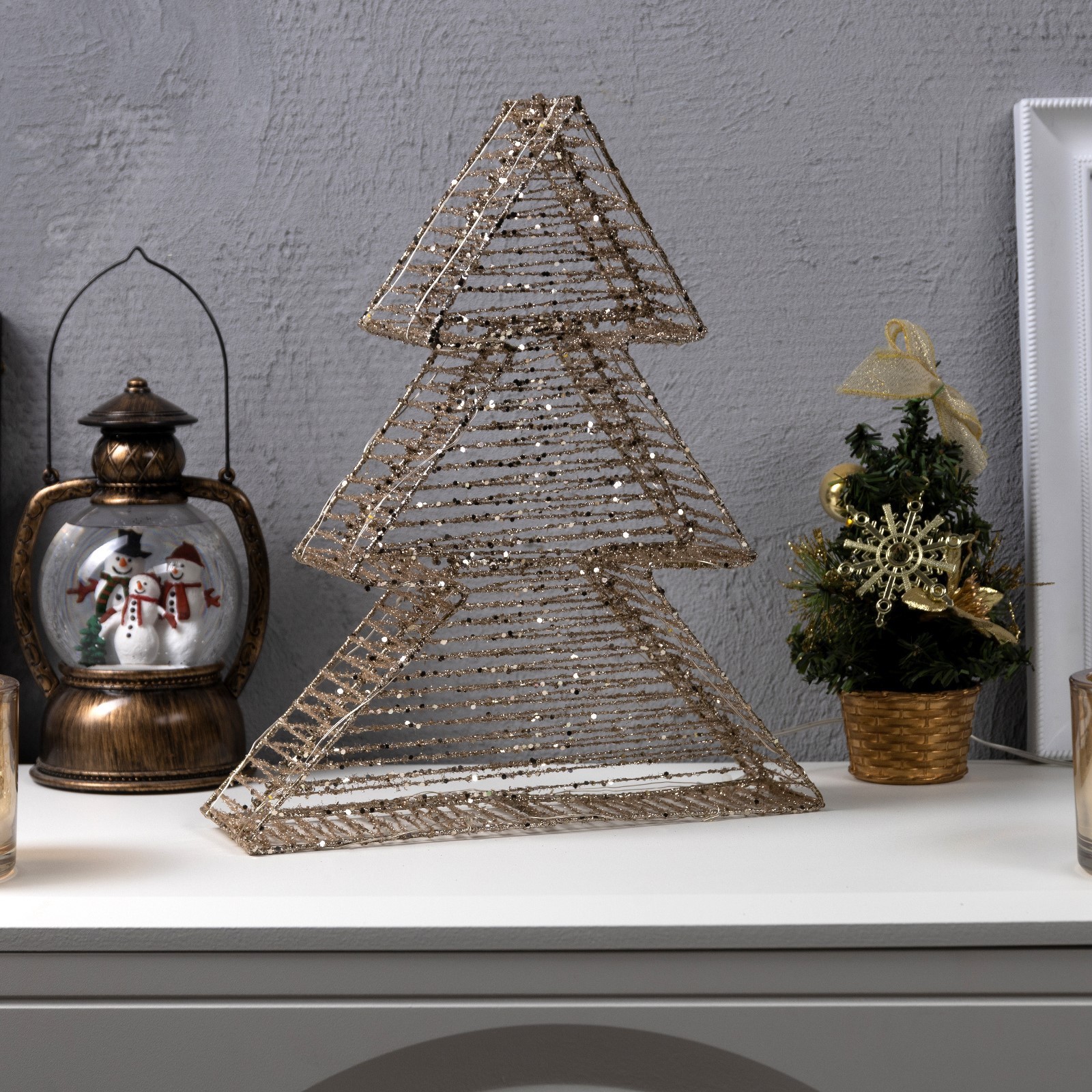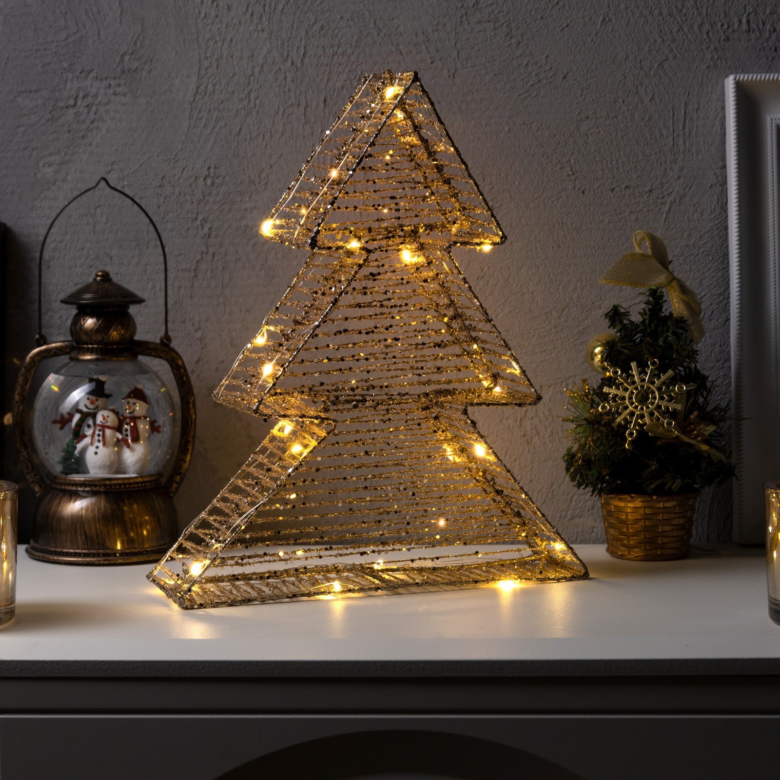 "Елка золотистая", светодиодная фигура, 28×32×7см, металл, свечение тёплое белое