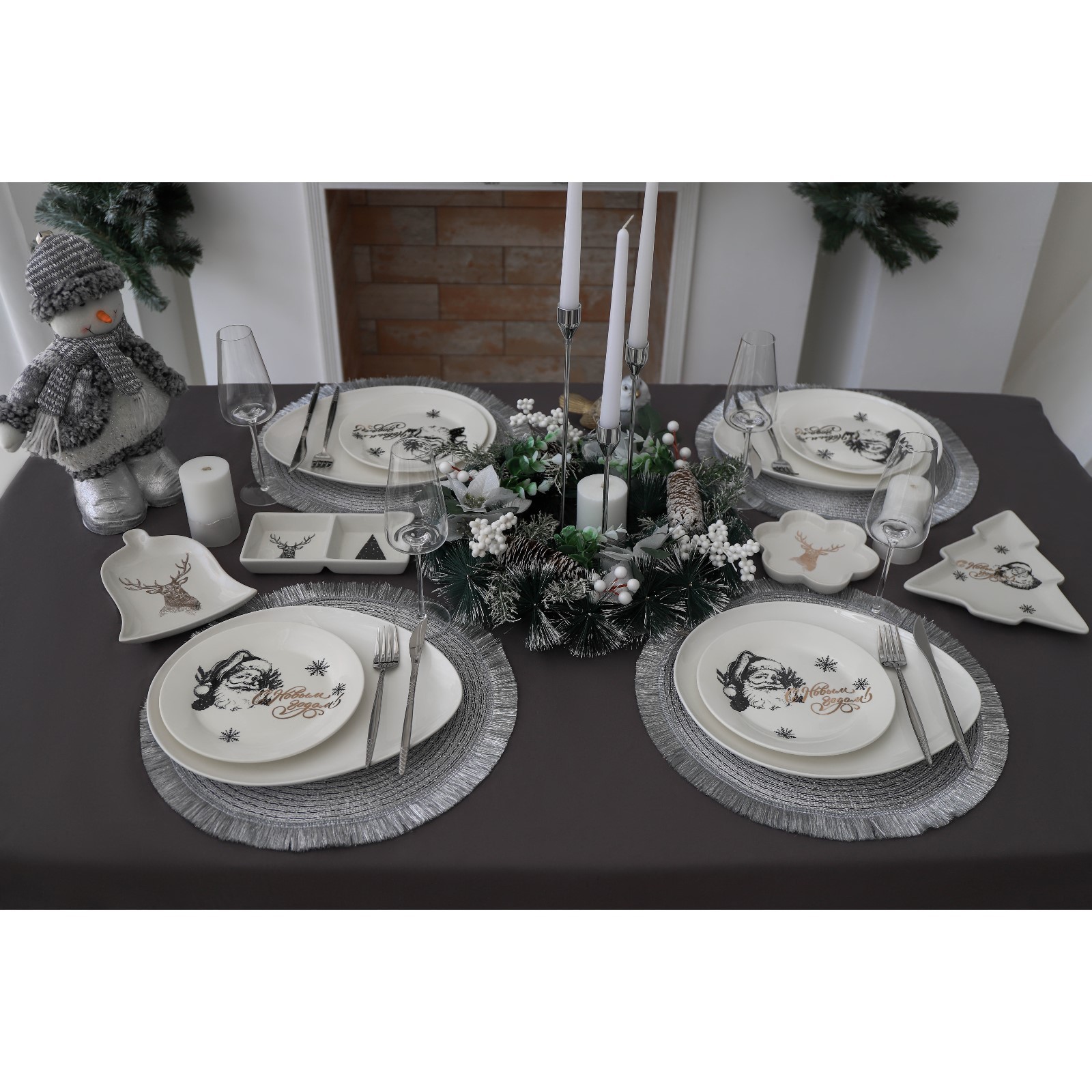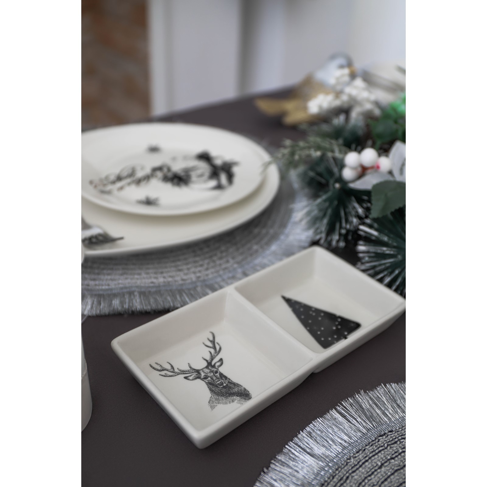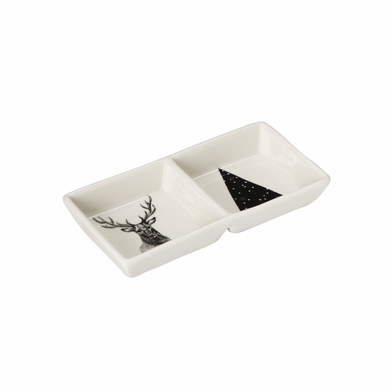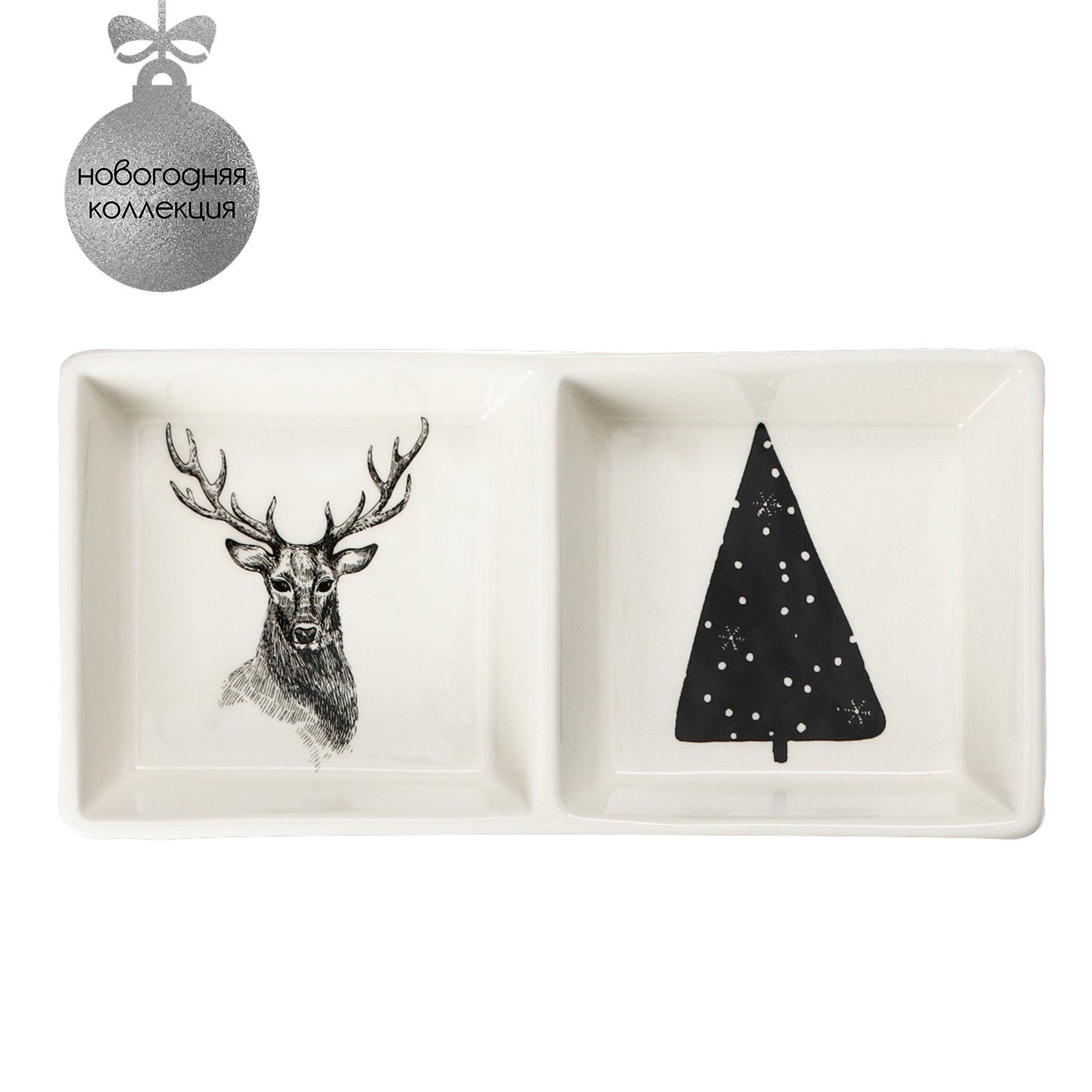 "Дед Мороз и олени", менажница 2 ячейки Доляна, 19,8×9,7×3 см, белый