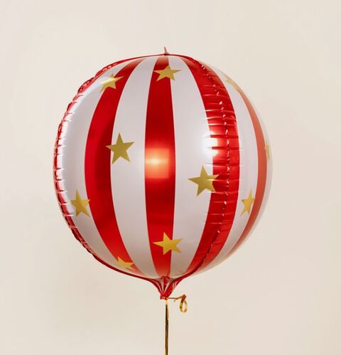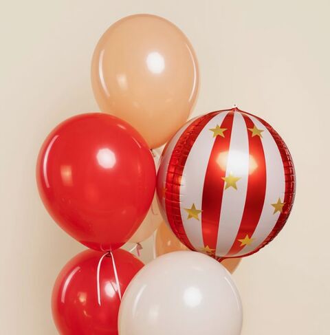 ЦИРК, воздушный шар фольгированный, 25 см, красный/полоски