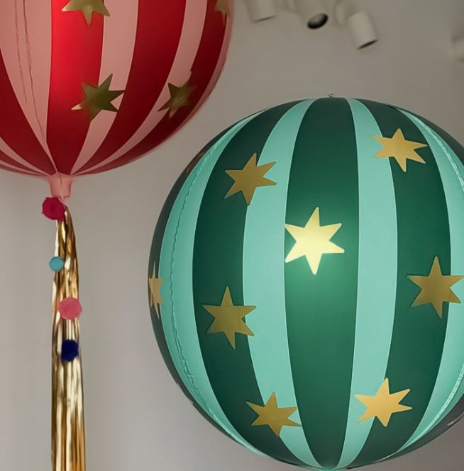 ЦИРК, воздушный шар фольгированный, 25 см, зеленый/полоски