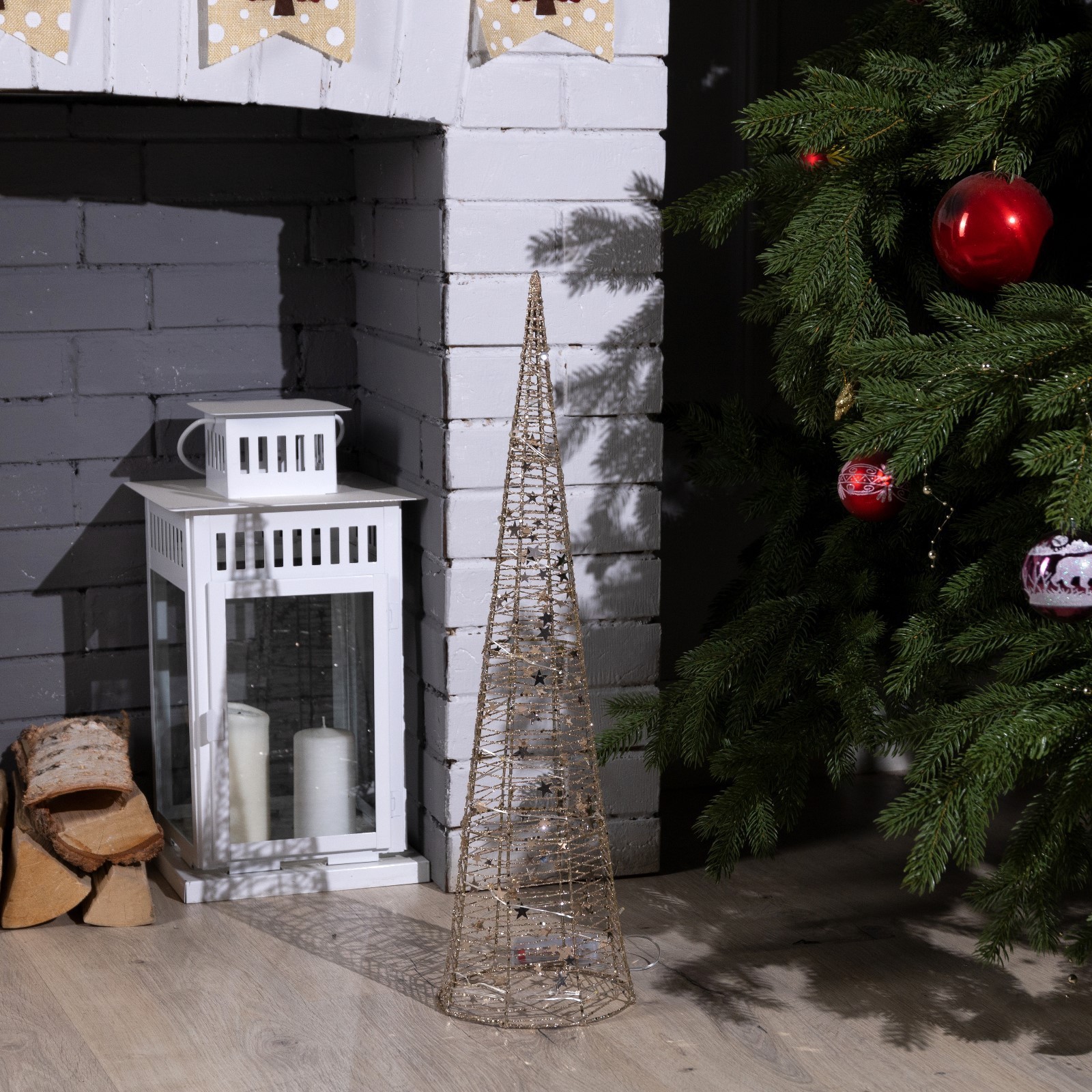 "Конус золотистый", светодиодная фигура, 17×60×17см, металл, свечение тёплое белое