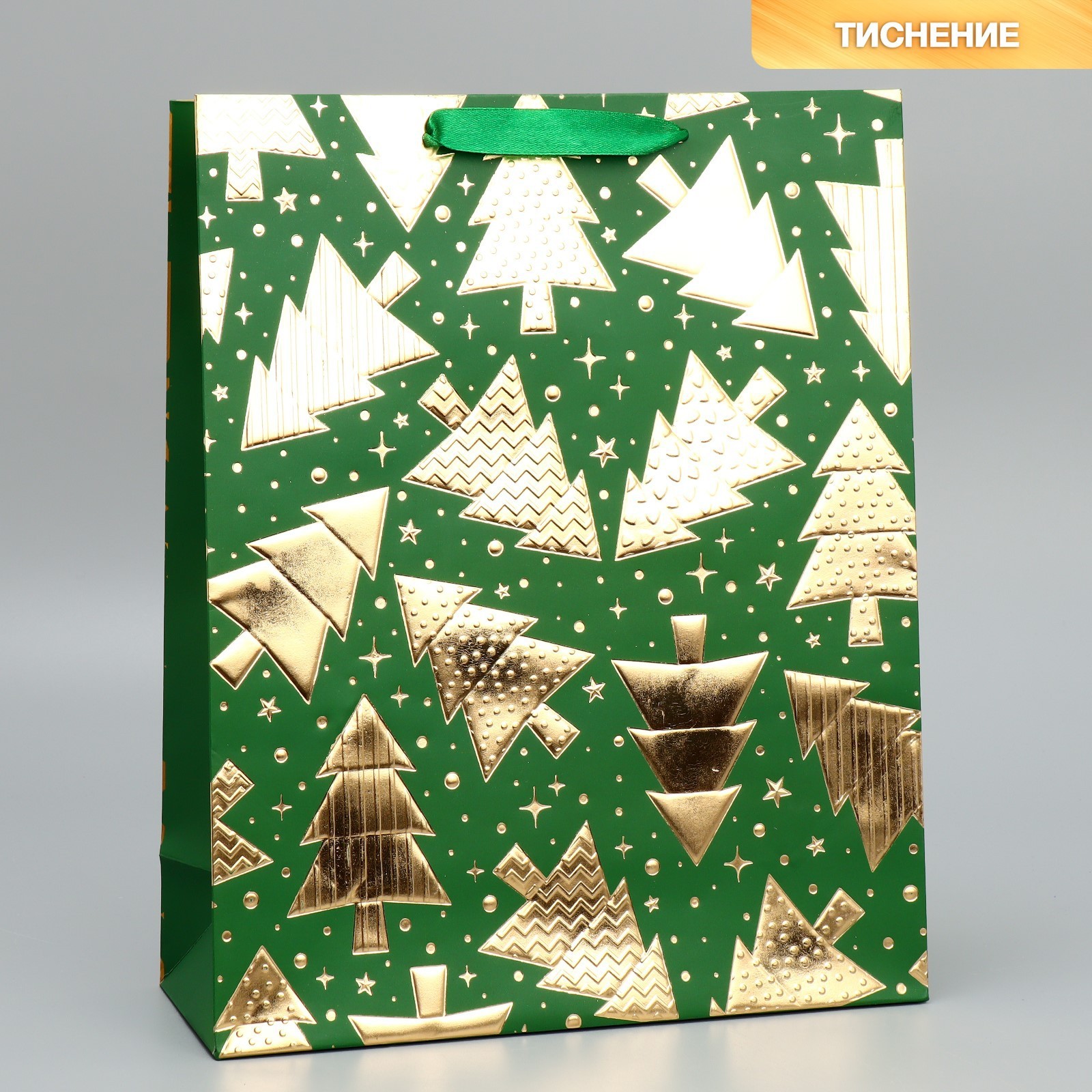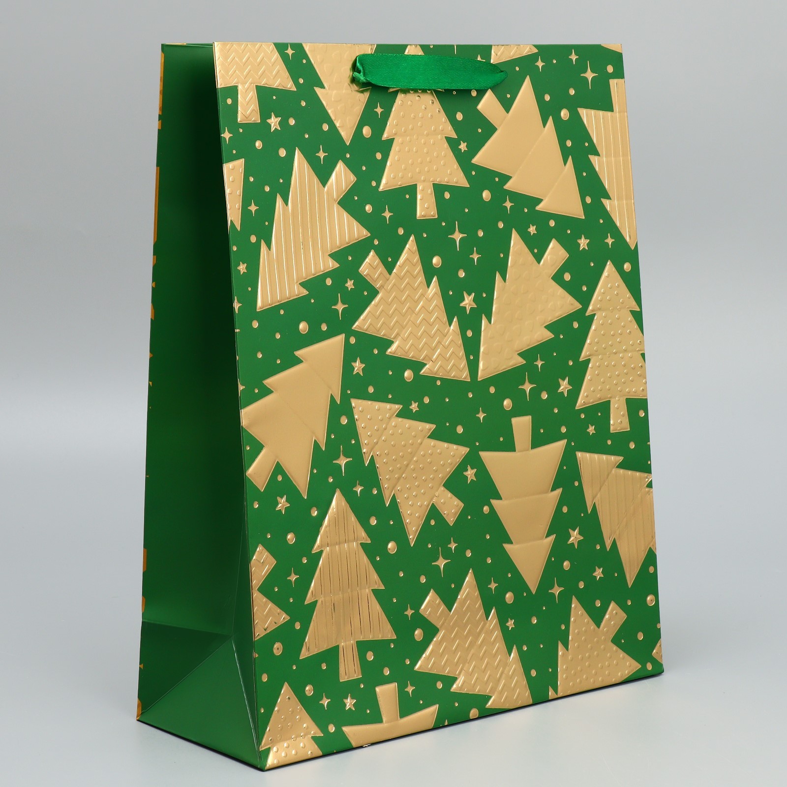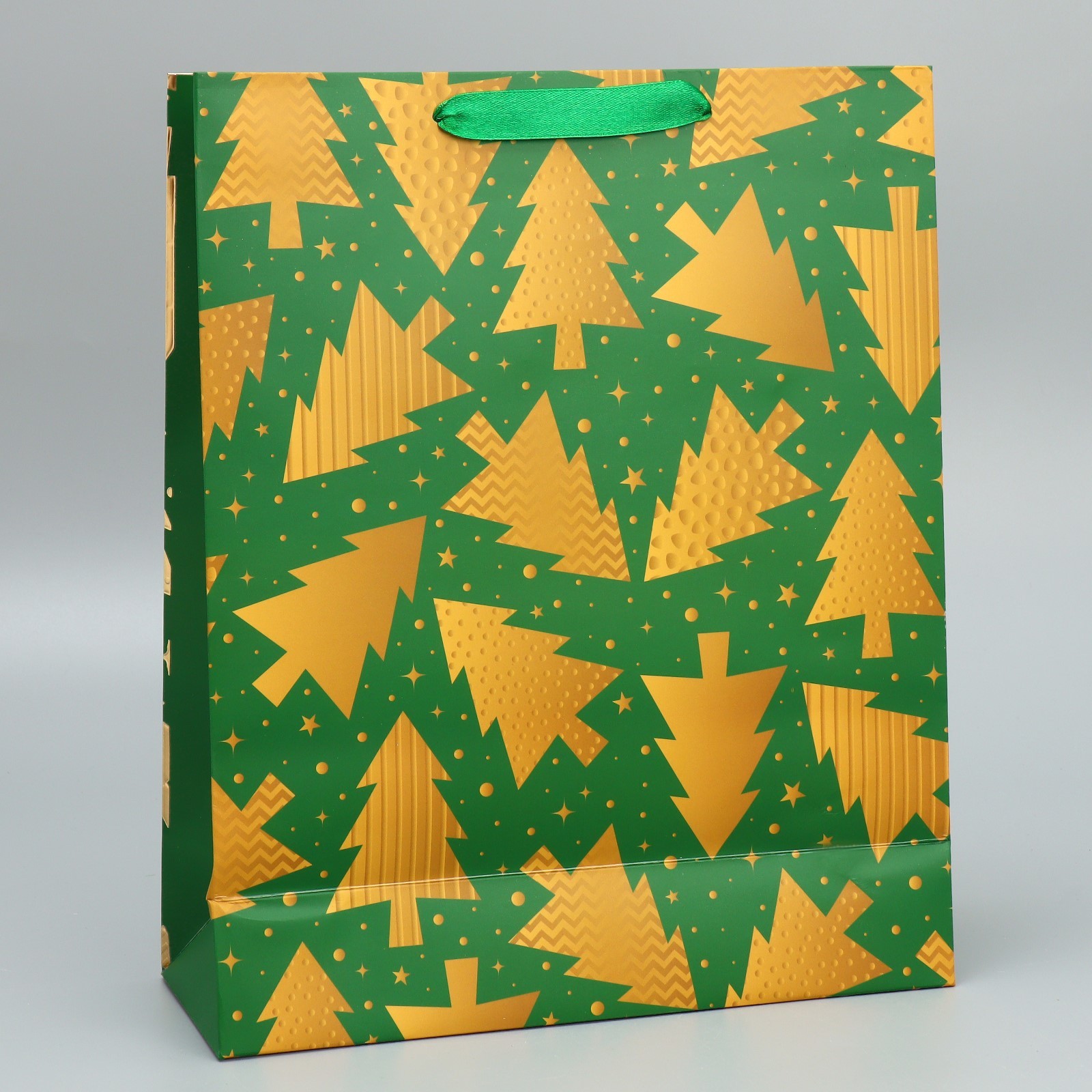 "Елочки", пакет подарочный, 32 × 26 × 10 см