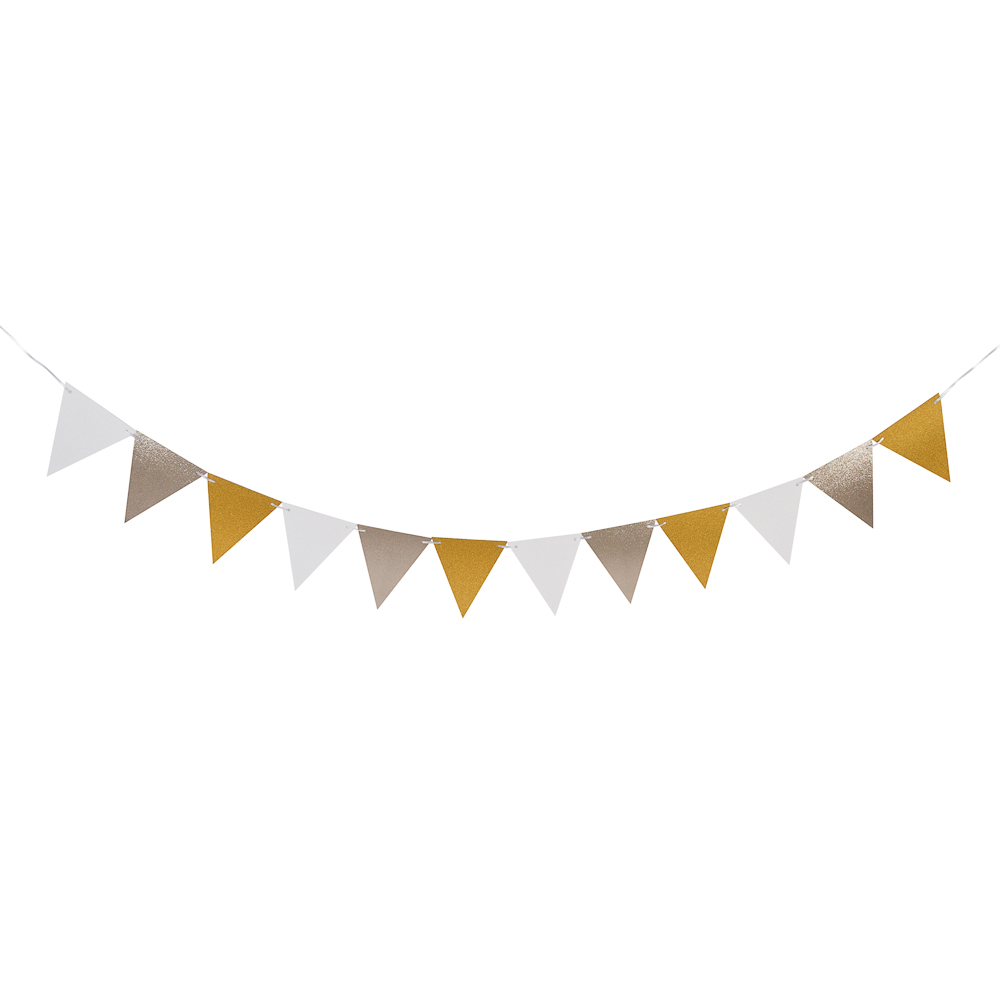 ПРАЗДНИК, гирлянда/баннер, 160 см, флажки, золотой, бронзовый, серебряный