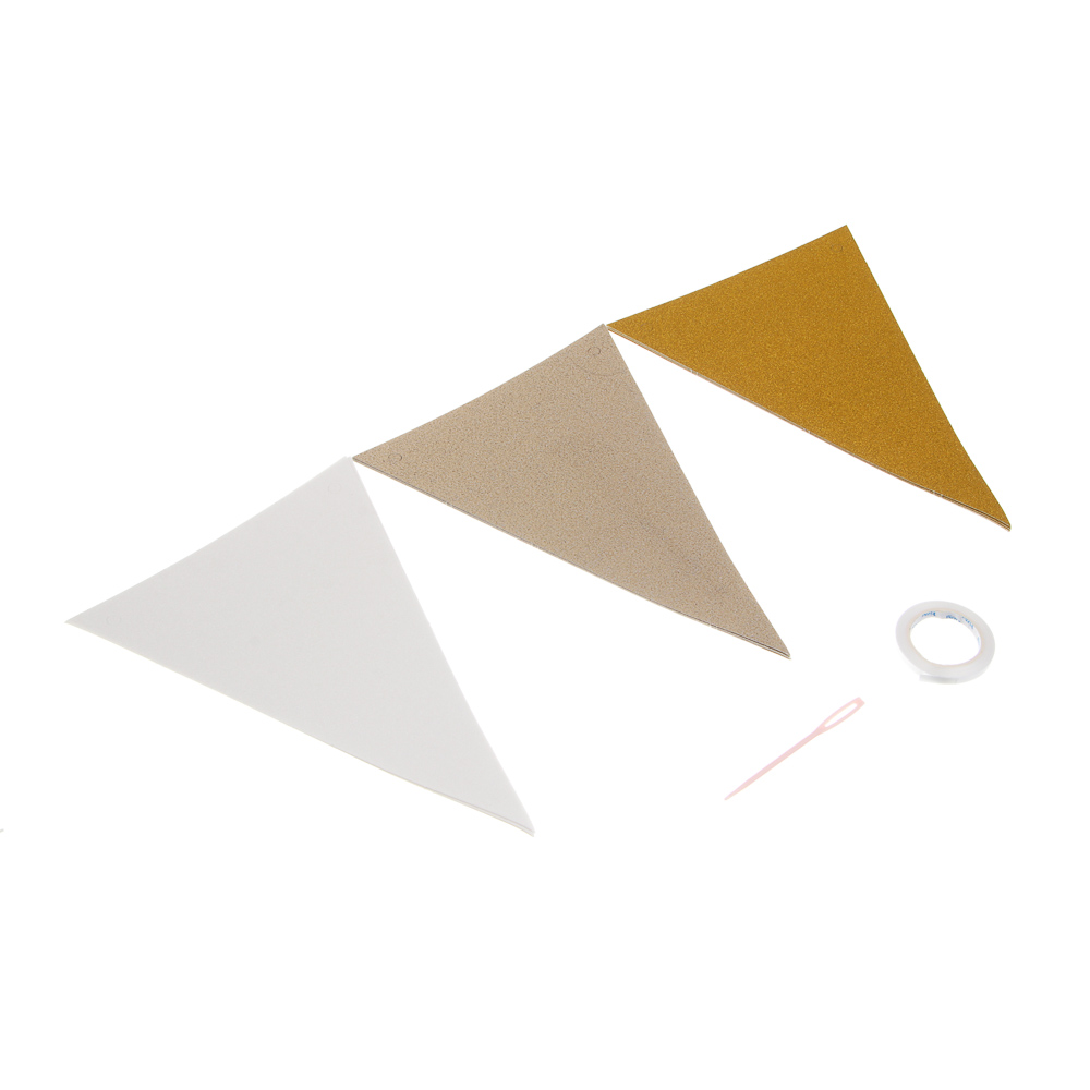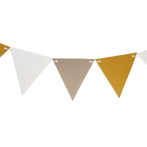 Растяжка Fntastic "Флажки", 12 треугольников, глиттер, бумага – это универсальный декор для любого праздника: Нового года, дня рождения, свадьбы, новоселья. Растяжку можно повесить дома на стену или в дверной проем, украсить входную группу или использовать для оформления банкетного зала. Выразительная и в то же время сдержанная цветовая гамма гармонично впишется в любой интерьерный стиль. Комплект включает флажки в трех цветах, ленту и пластиковое приспособление для удобного вдевания ленты в отверстия на флажках.