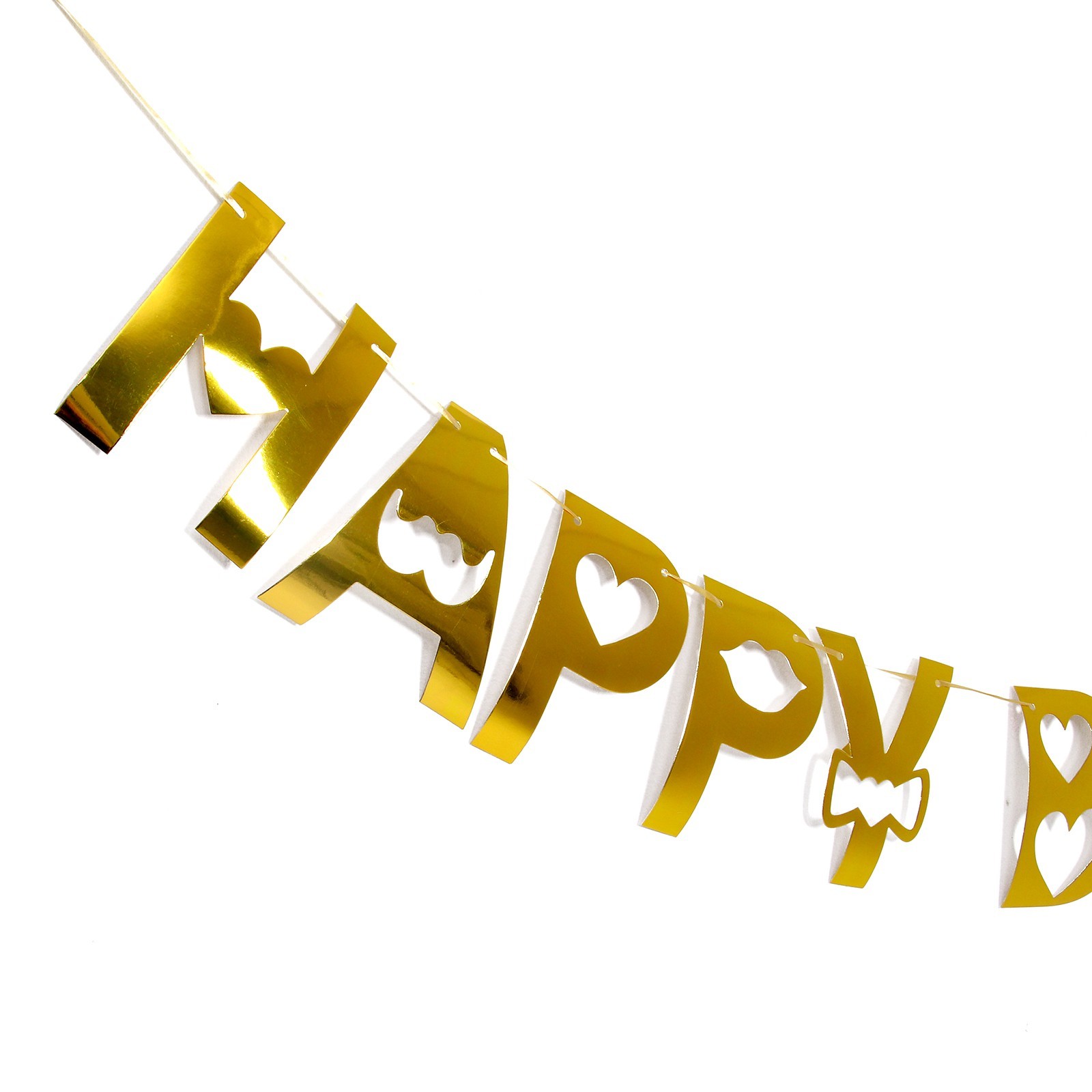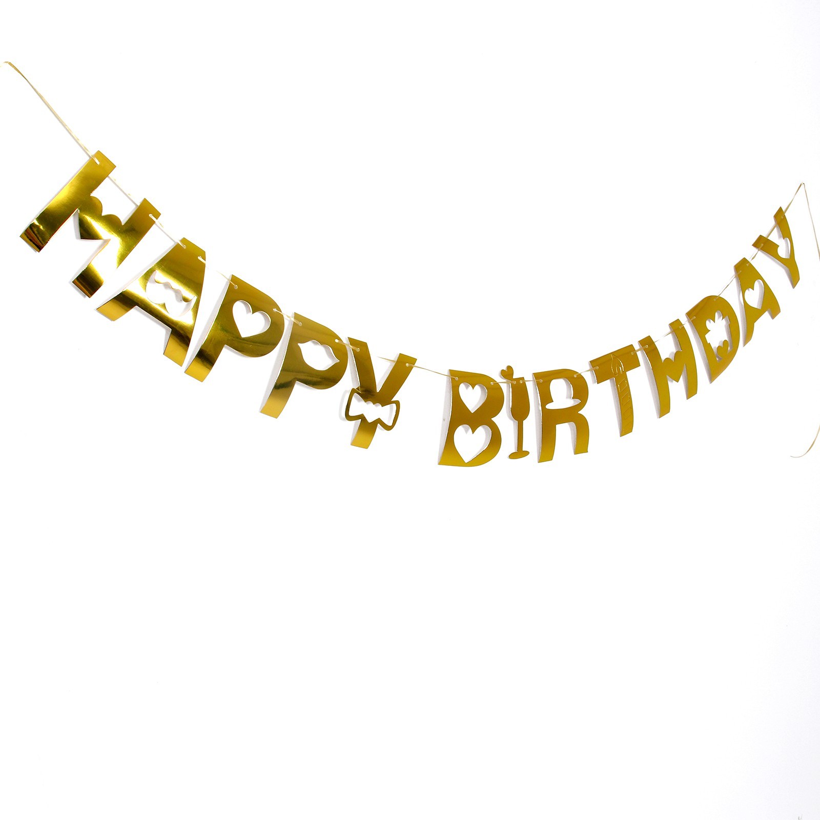 ПРАЗДНИК, гирлянда/баннер на день рождения, английский, золотой