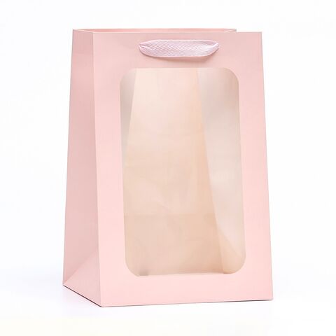Вертикальный розовый подарочный пакет с окном — это стильная и вместительная упаковка, которая сочетает в себе нежный цвет, прочную конструкцию и интригующую деталь в виде прозрачного окошка. Он создаёт ощущение праздника даже до момента вручения.