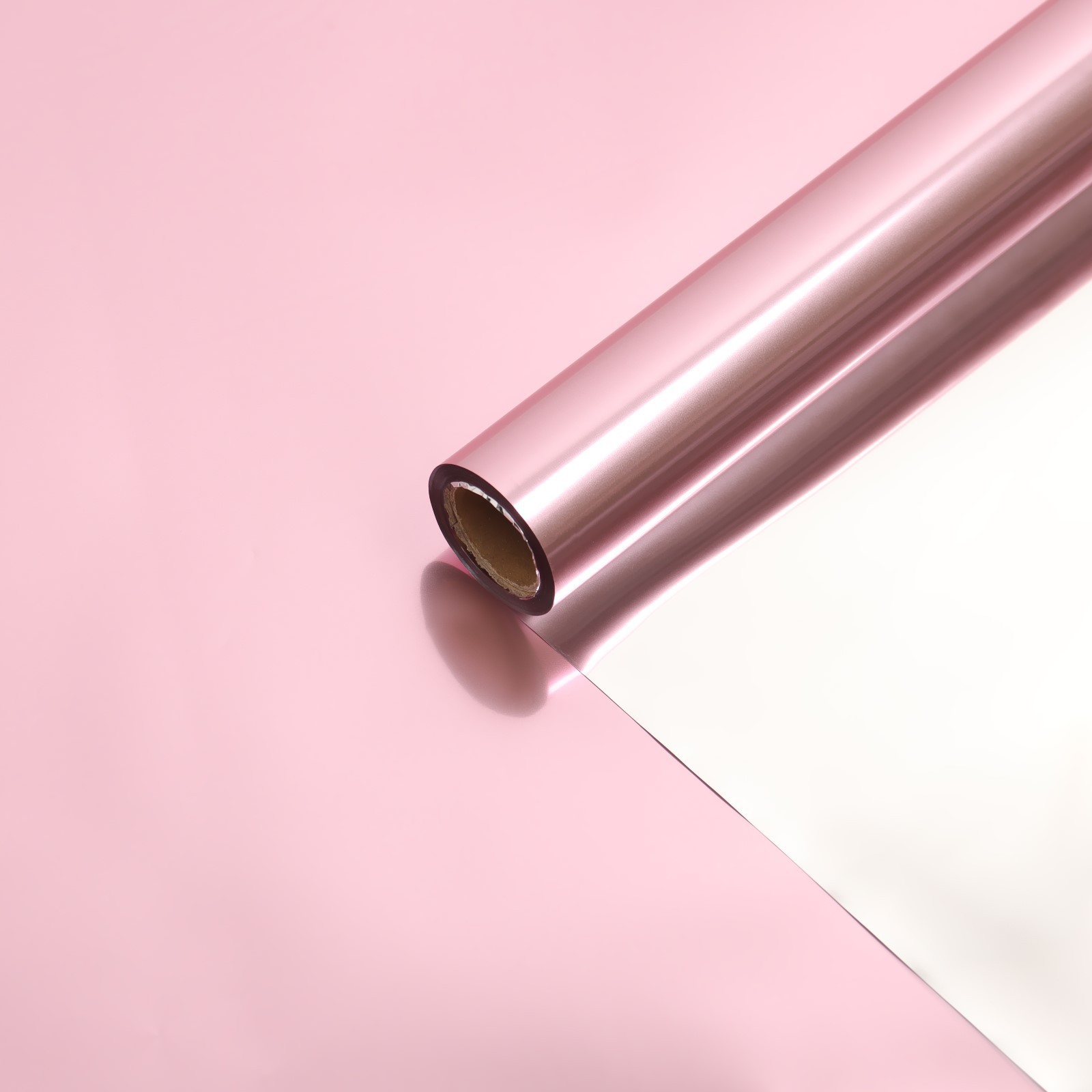 Металлический блеск в романтичной гамме. Пленка «Металлик», розовая, в рулоне 0.57×10 м — это материал с эффектом мягкого металлического сияния. Сочетание нежного розового оттенка и перламутрового блеска создает праздничный и нарядный образ.