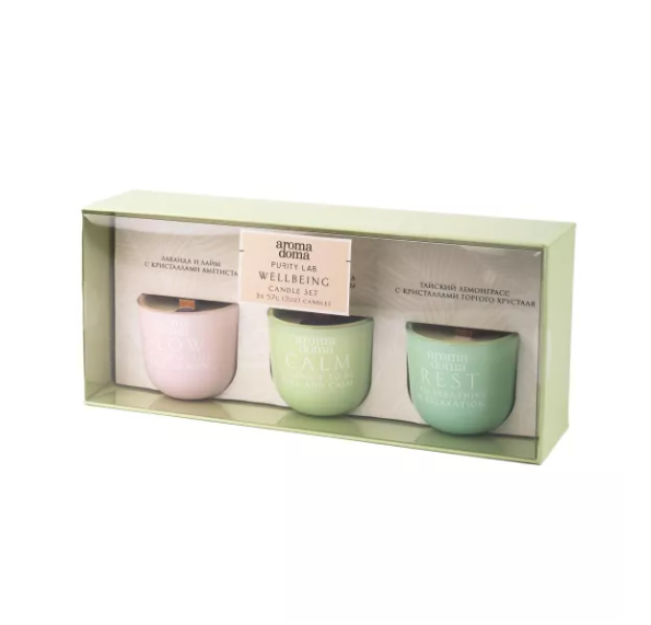 АРОМА ЛАБ, набор свечей, 3 шт, лаванда, кокос, лемонграсс