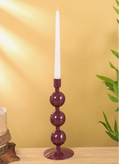 АРТДЕКО, подсвечник с 3 сферами, 25 см, бордовый/баклажановый