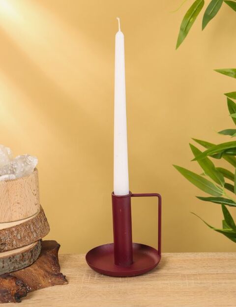 АРТДЕКО, подсвечник с ручкой и блюдцем, 10 см, бордовый/баклажановый