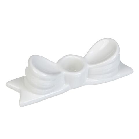 Элегантный подсвечник ТМ LADECOR в форме банта станет стильным декоративным акцентом для вашего интерьера. Выполненный из прочного доломита и выполненный в белом цвете, он сочетает в себе эстетичность и функциональность. Компактные размеры 14×3,5×4 см позволяют удобно размещать подсвечник на столе, полке или комоде, а изящная форма банта добавляет изысканности и утончённости. Подсвечник предназначен для небольших свечей, создавая мягкое и уютное освещение. Он отлично подойдёт для украшения праздничного стола, романтического вечера или повседневного декора. Благодаря нейтральному белому цвету и лаконичному дизайну, изделие гармонично вписывается в любой интерьер, а также станет прекрасным подарком для друзей и близких.