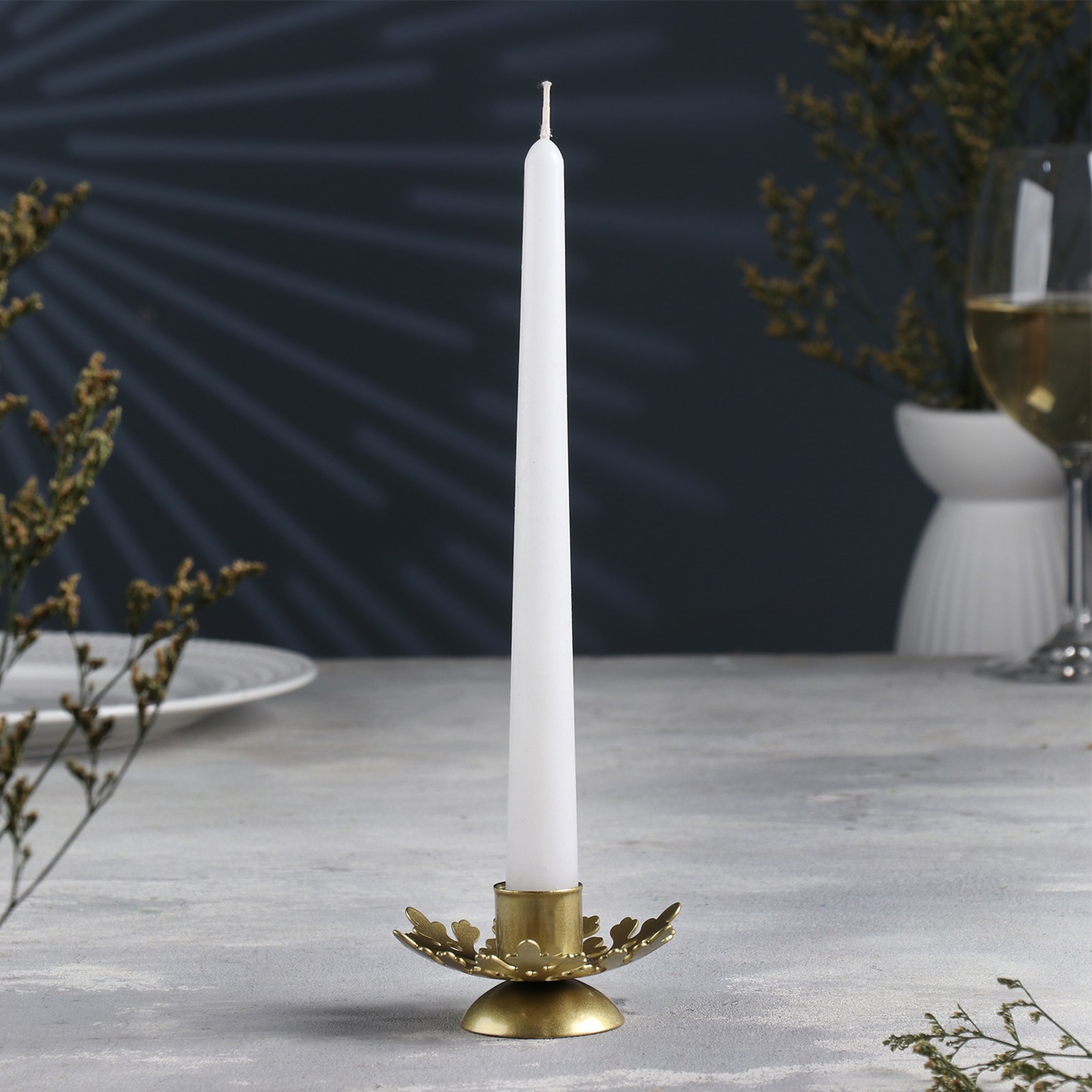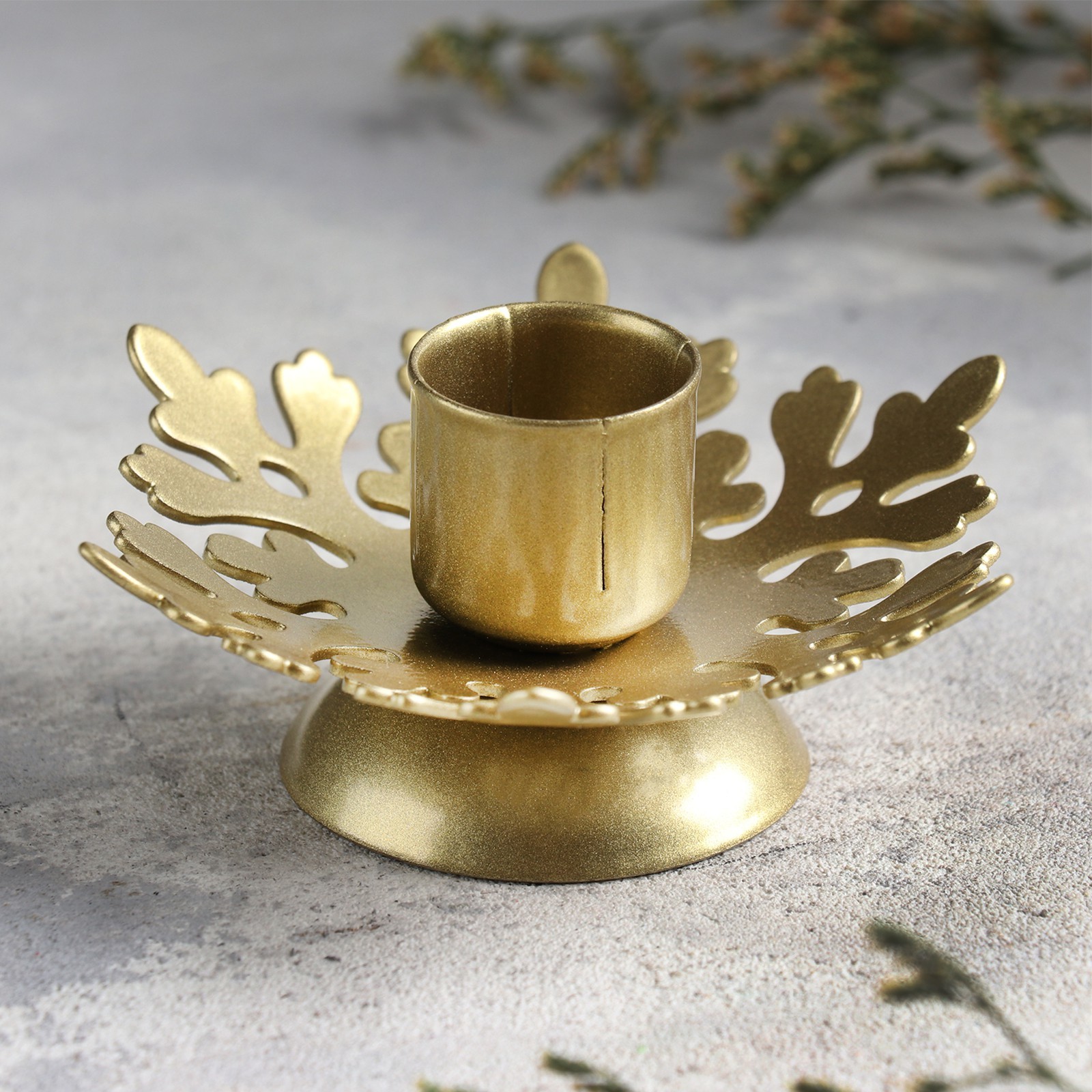 "Изморозь", подсвечник, металл на одну свечу, 9,2х9,2х4,1см, золотой