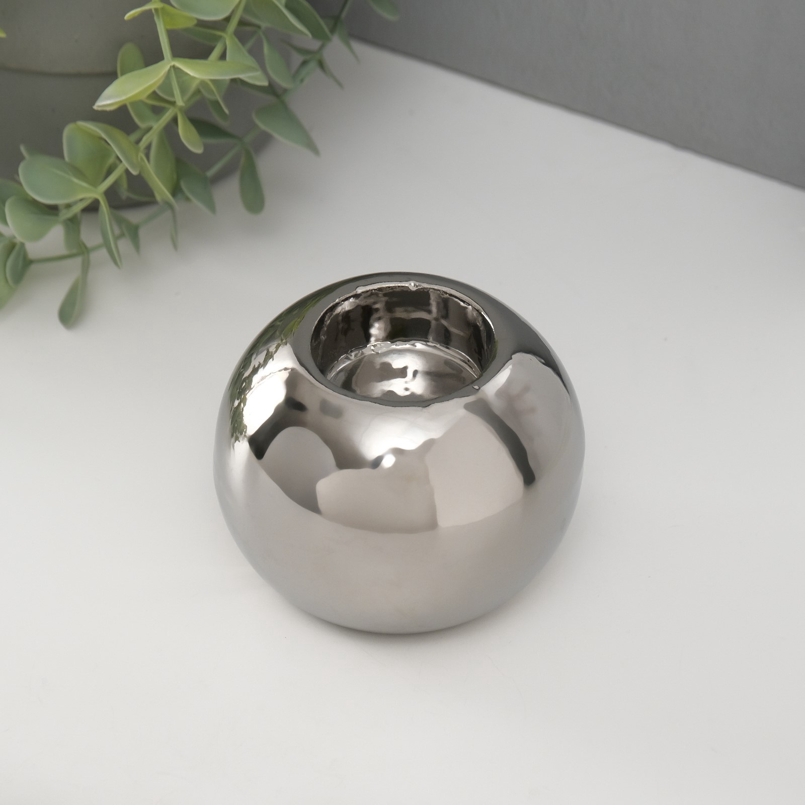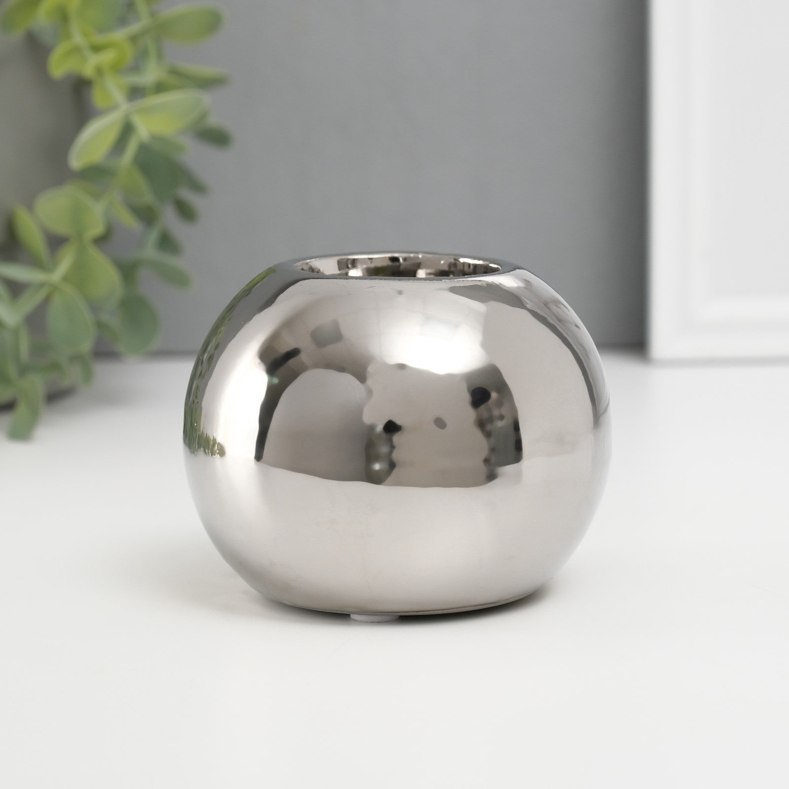ШАР, подсвечник, керамика, 9,5х6,5 см, серебристый