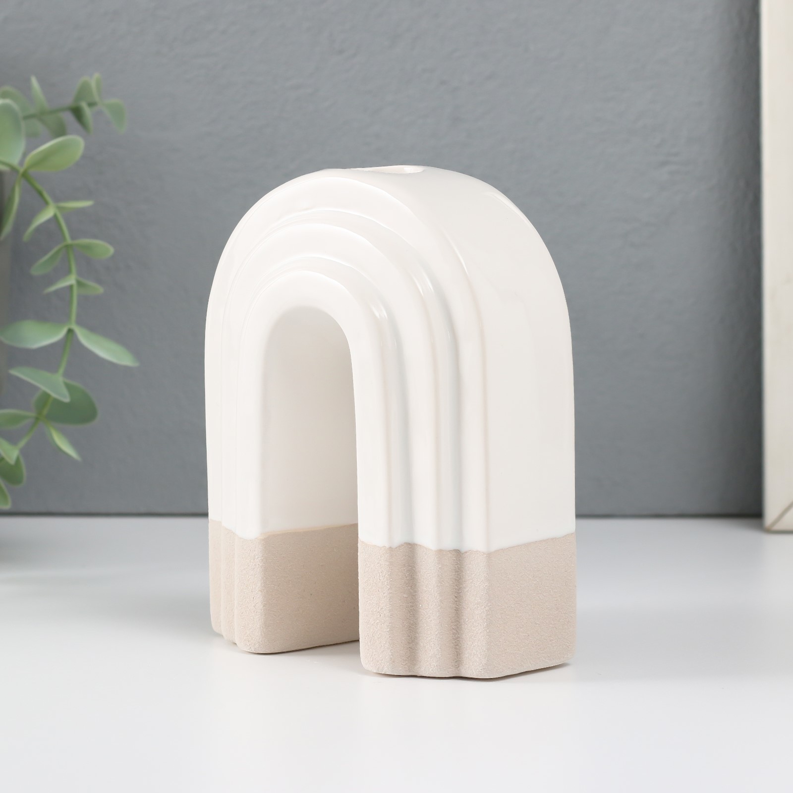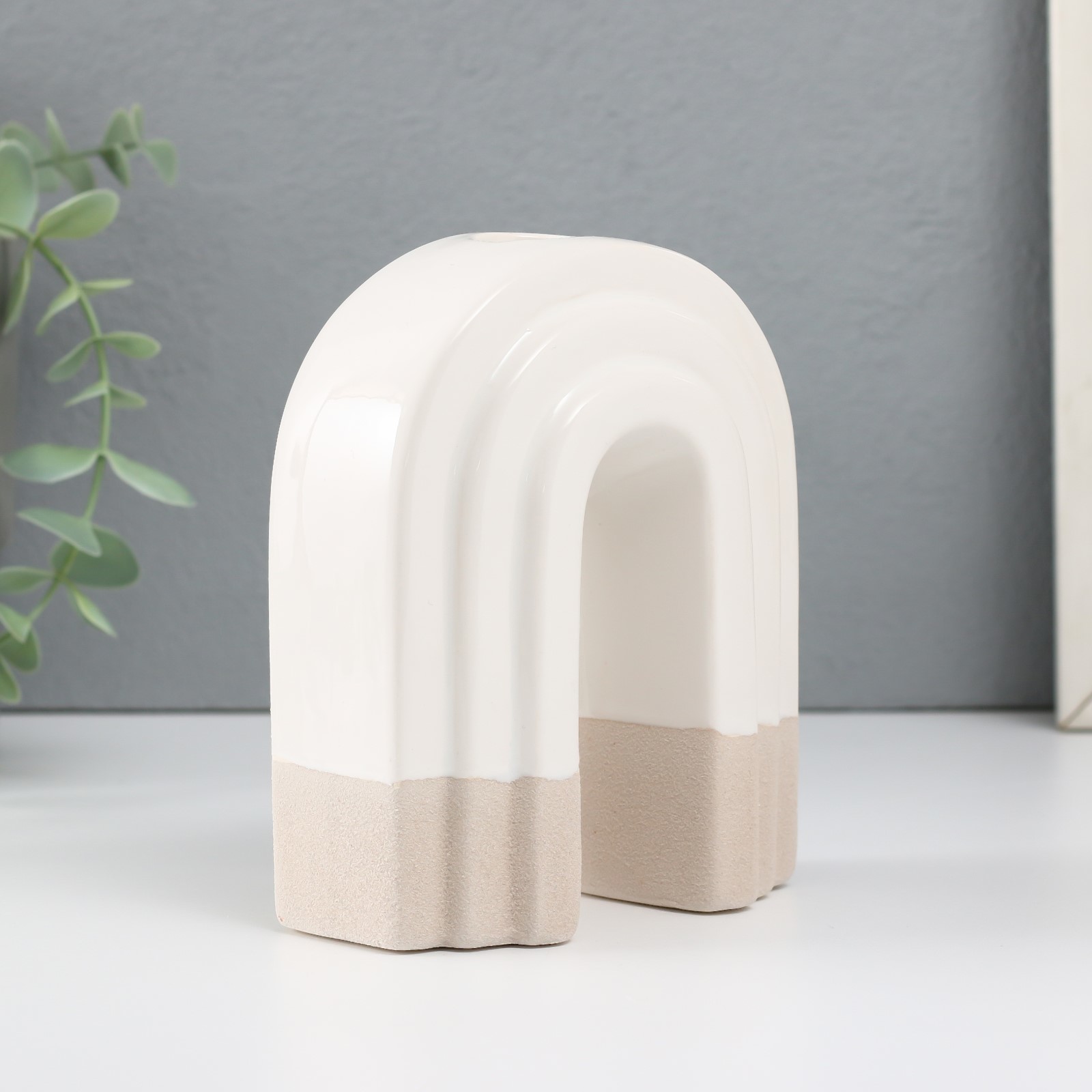 Скара, подсвечник керамический, 10,2х6х12,8 см, песочно-белый
