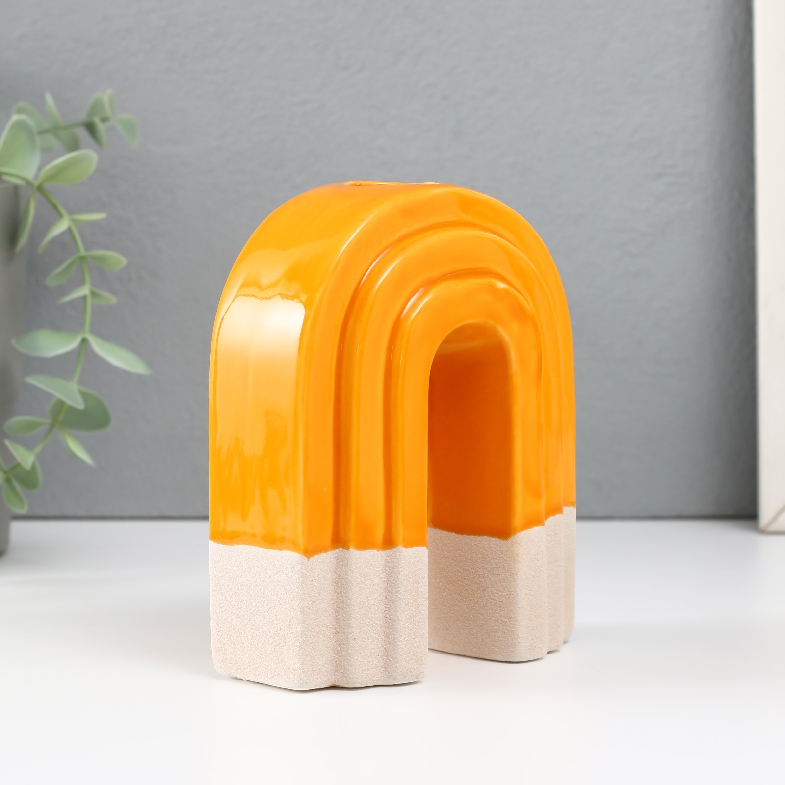 Скара, подсвечник керамический, 10,2х6х12,8 см, песочно-оранжевый