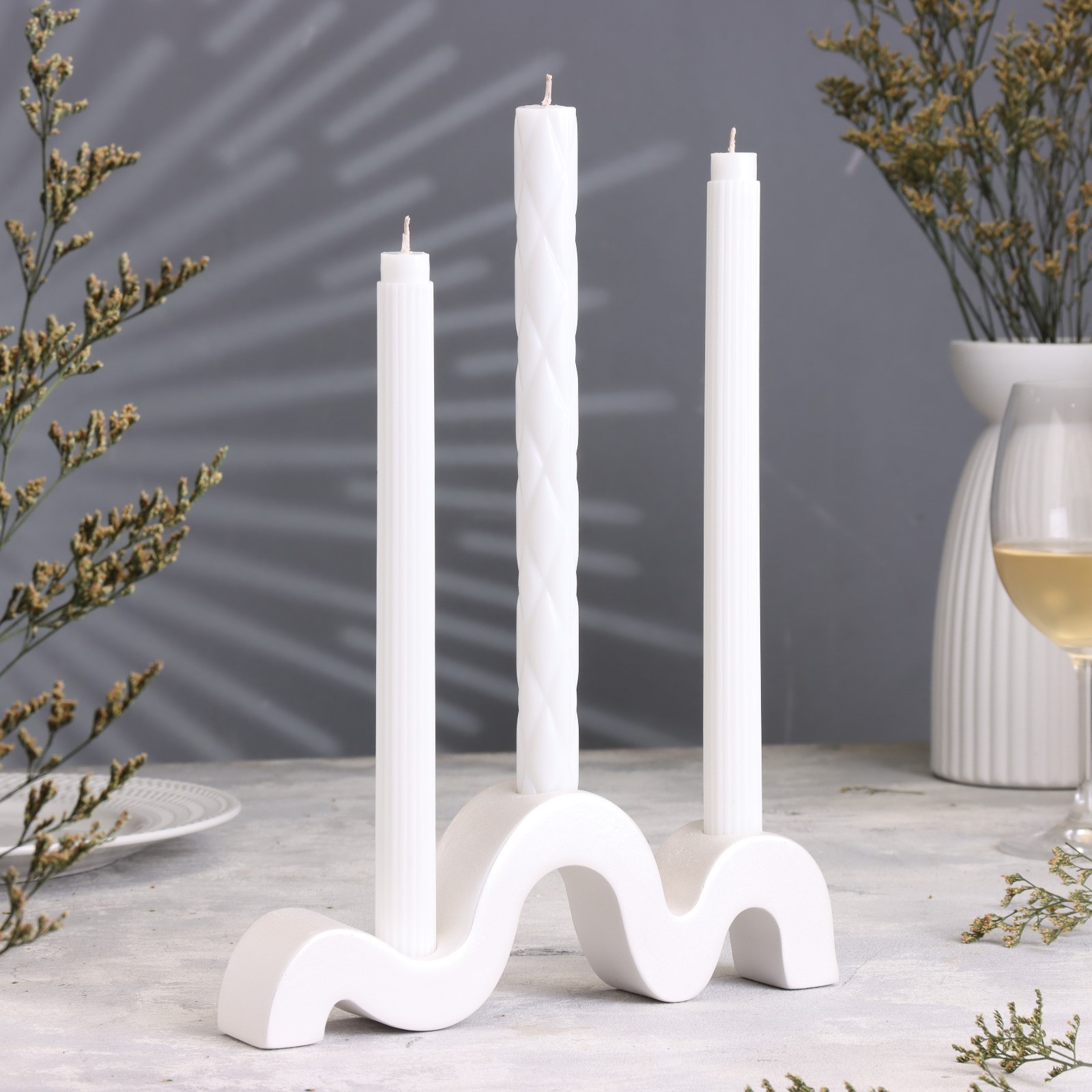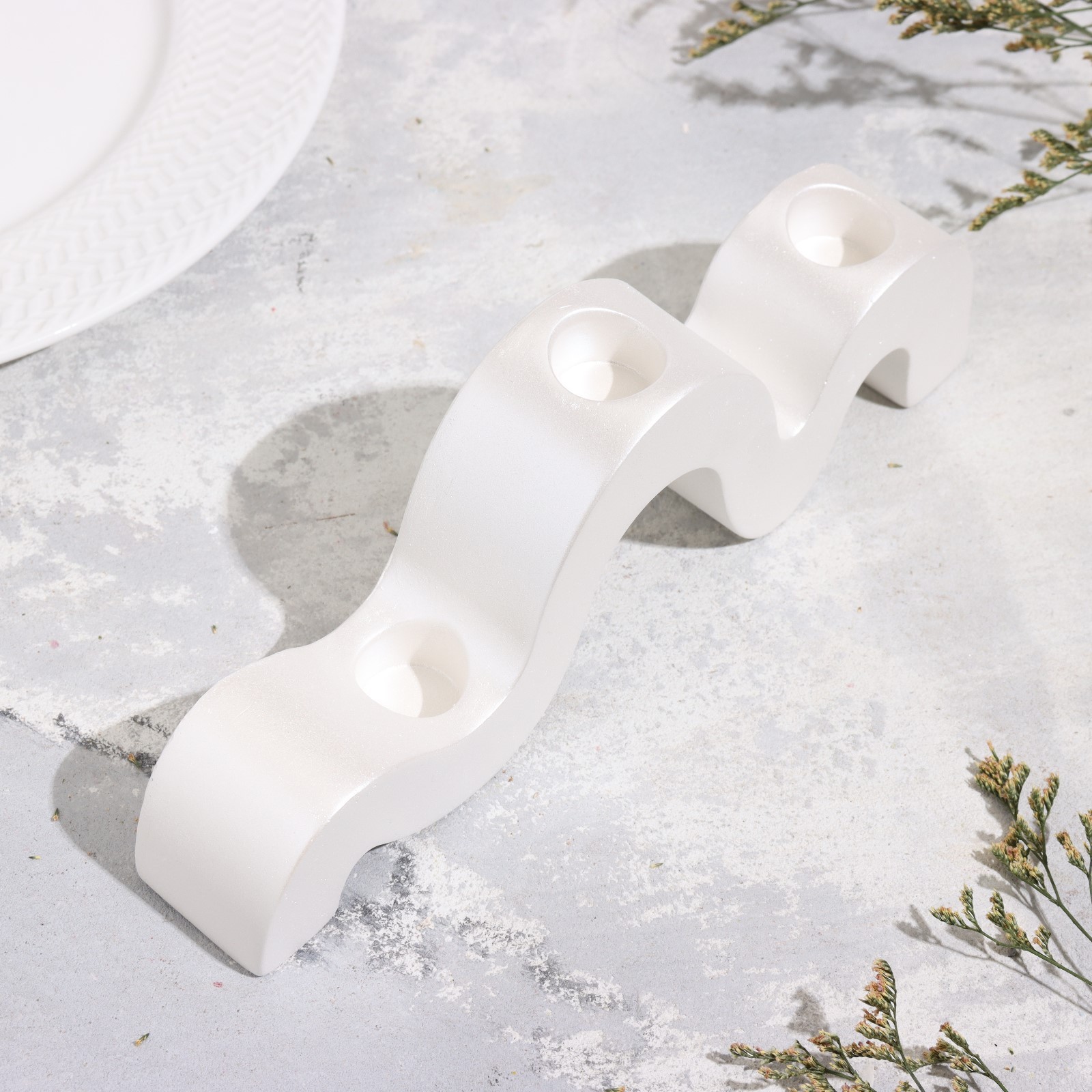 "Волны", подсвечник, для трех свечей из гипса,23,5х3,5х8см,белый перламутр