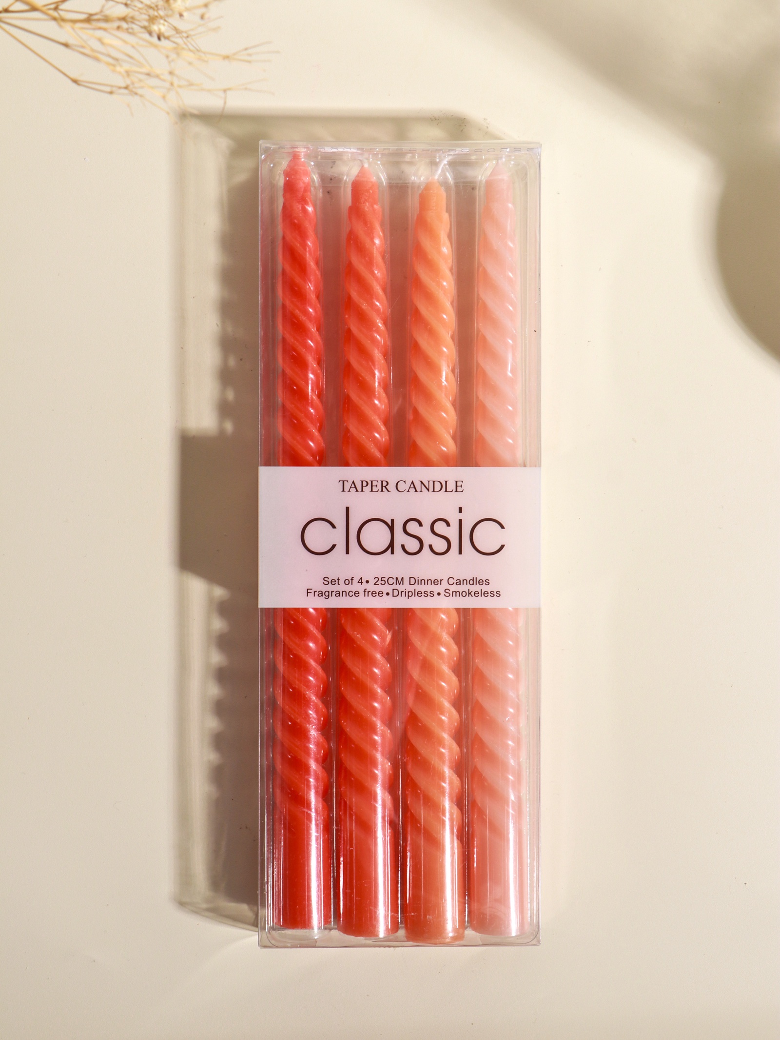 Набор высоких витых свечей создаёт тёплую и уютную атмосферу в интерьере. Эти стройные свечи с выразительным рельефом станут изящным акцентом для романтического ужина, медитации или спокойного вечера с книгой. Их живое пламя привносит в пространство динамику и мягкое свечение, помогая расслабиться после напряжённого дня.