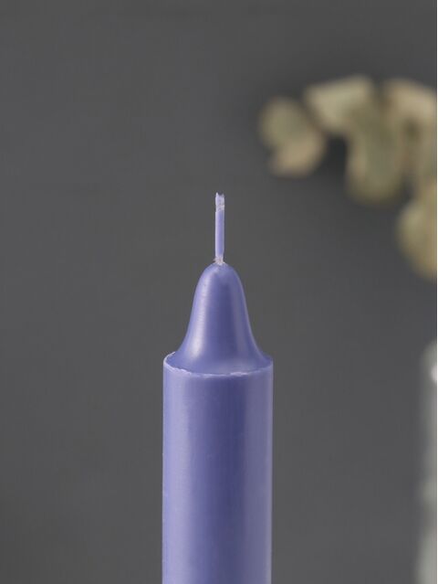 Эта свеча, высотой 21 см и диаметром 2,4 см, изготовлена из качественного парафина, что обеспечивает её равномерное горение и долговечность. Её форма — цилиндр с конусом — добавляет изысканности, а сиреневый цвет гармонично вписывается в любой интерьер. Аромат лаванды, который наполняет комнату при горении, создаёт атмосферу уюта и спокойствия.