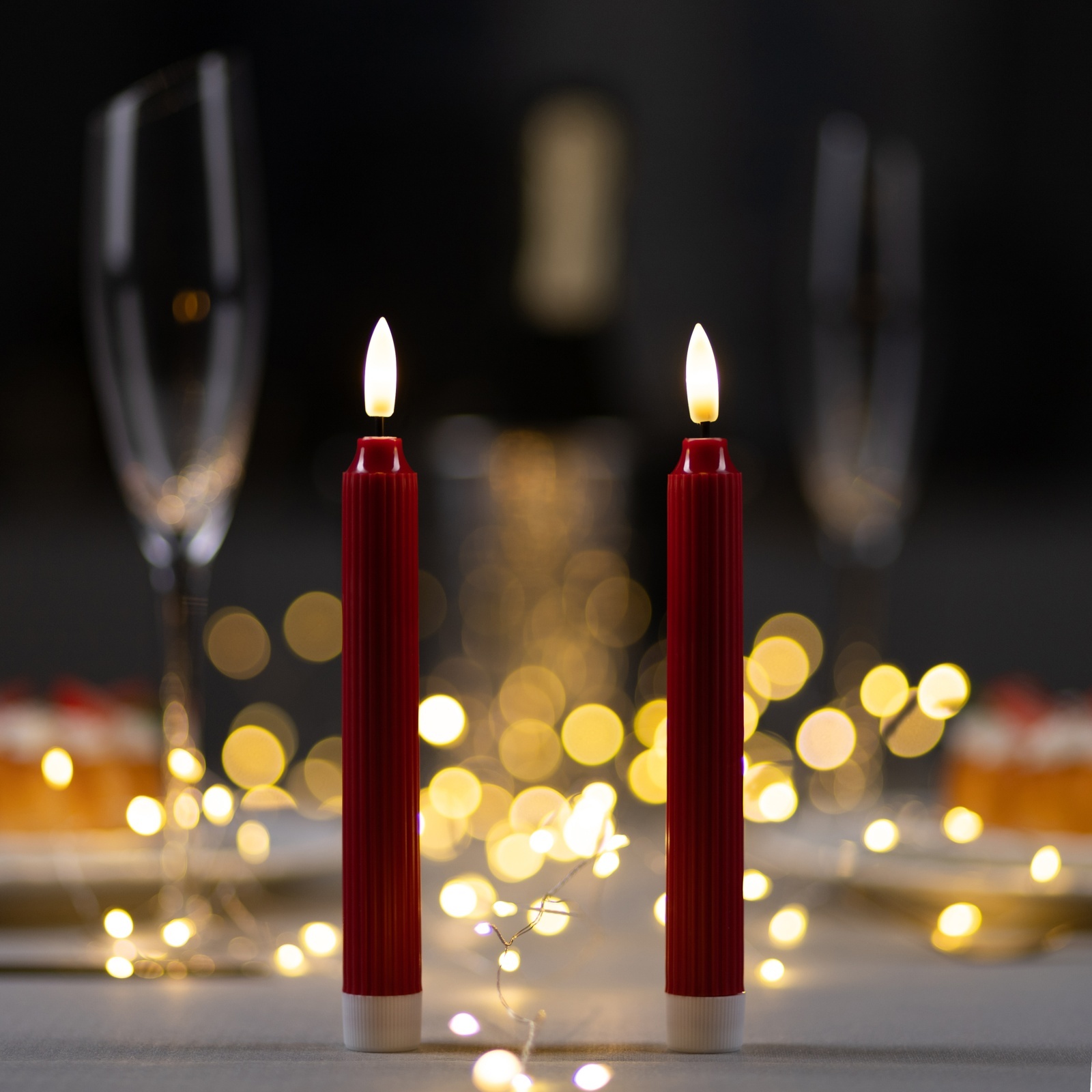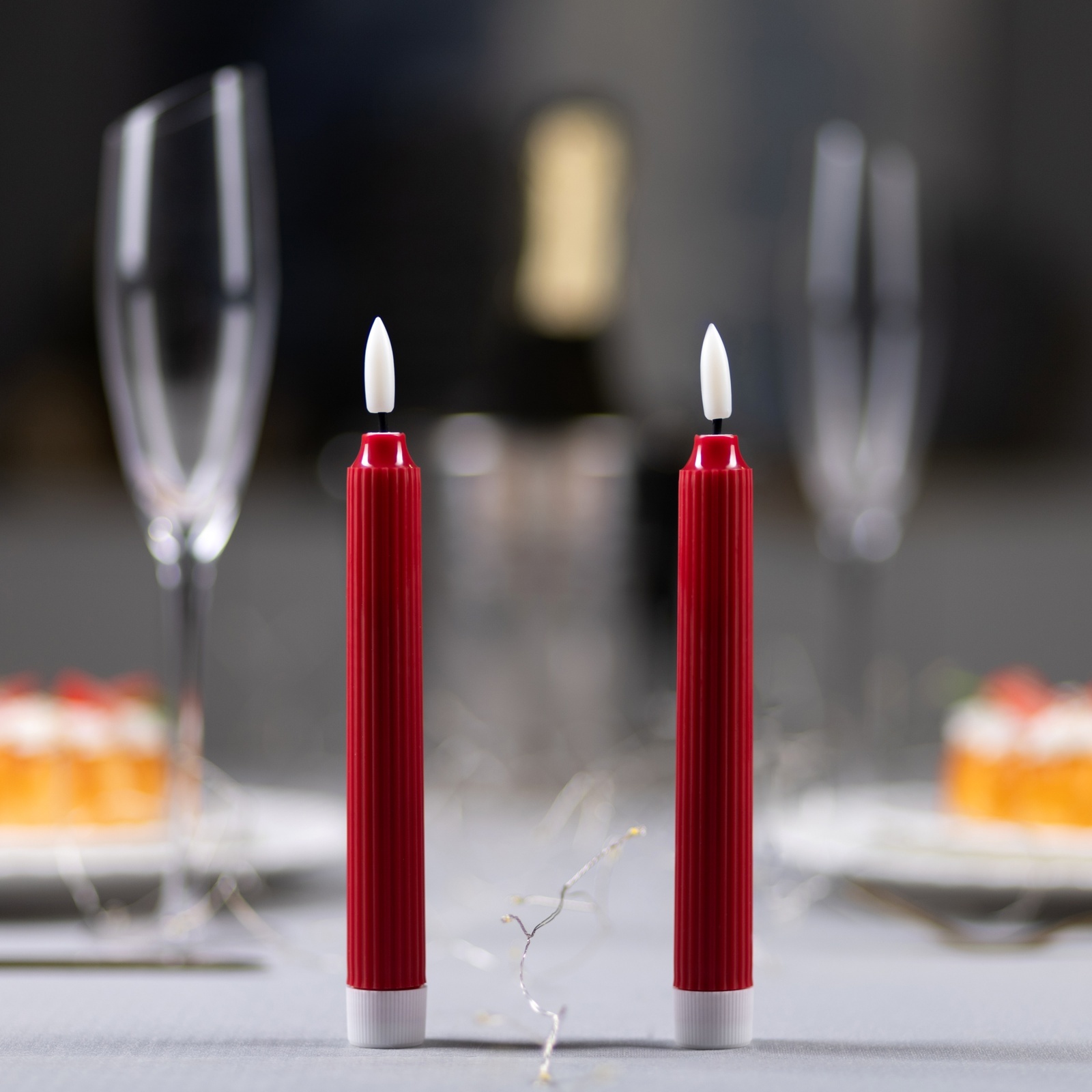 ХЮГГЕ, набор светодиодных столовых свеч, 2шт, 19 см, ААx2, красный