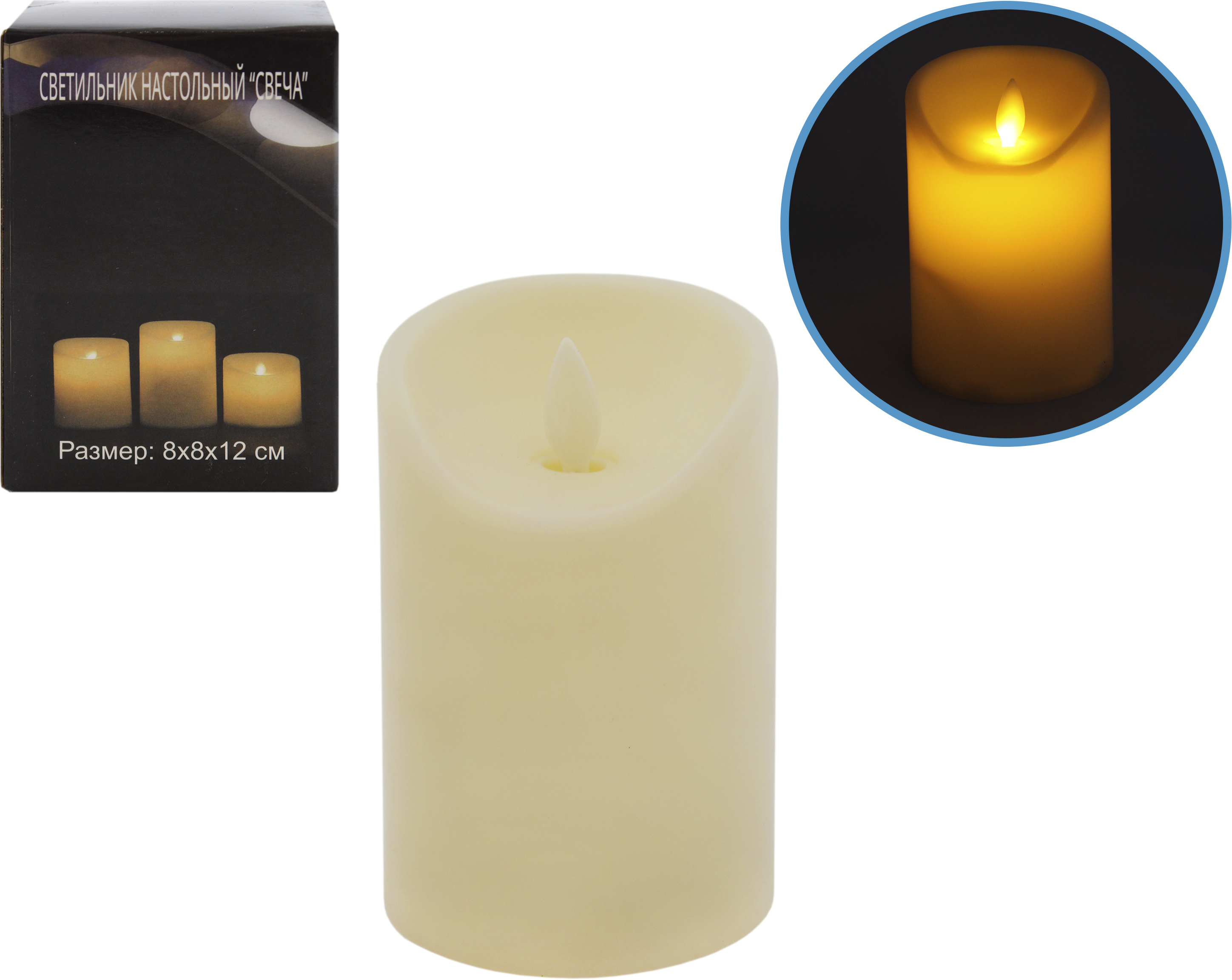 Светильник с эффектом горения живого пламени, язычок пламени колышется. Работает от батареек 3 шт. ААА (батарейки не входят в комплект).