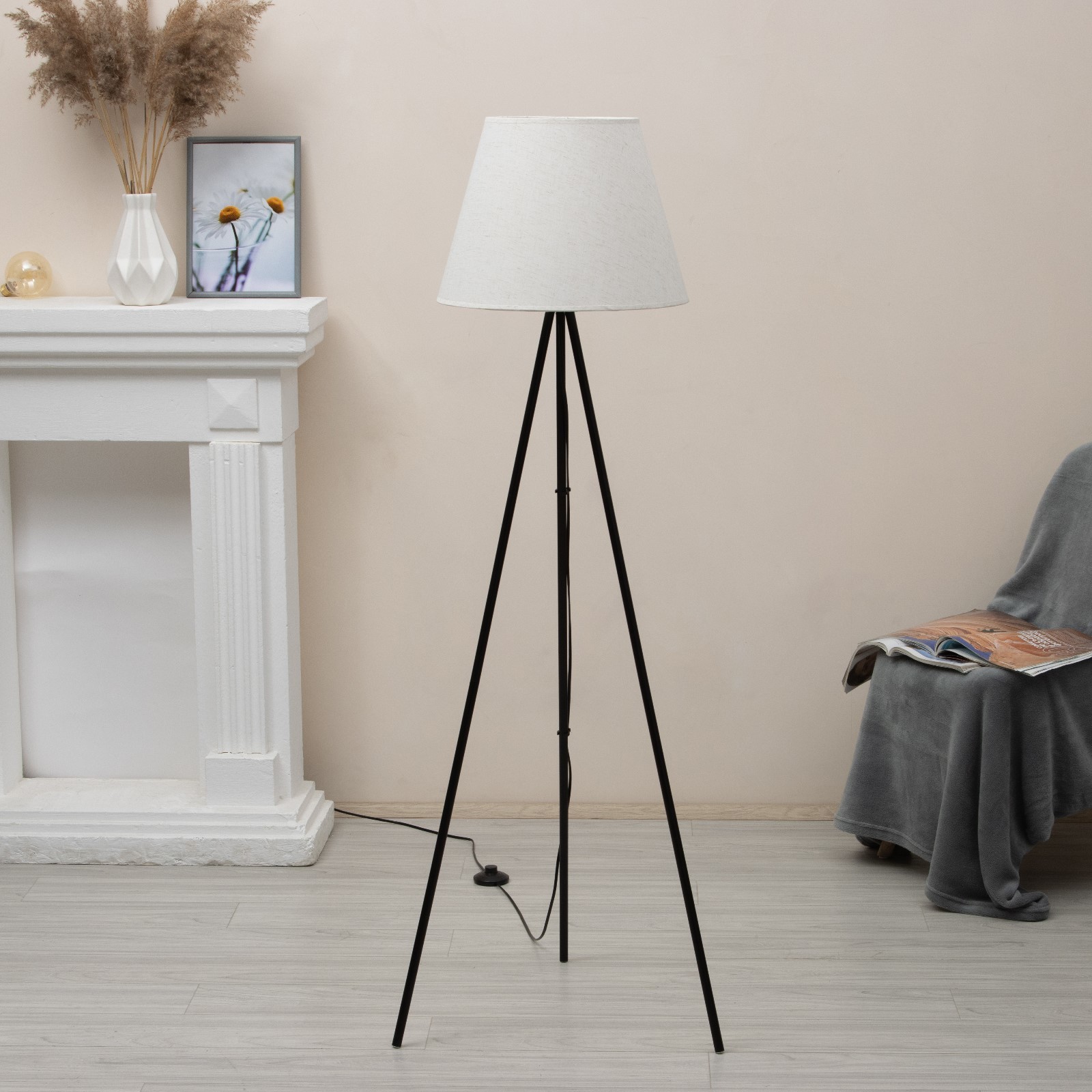 ЛАУТ, торшер, 130-140 см, E27, черное основание/белый