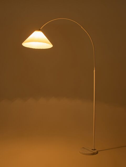 Напольный торшер с белым плафоном и каменным основанием создаёт мягкое и уютное освещение в гостиной или спальне. Высота 180  см и продуманная конструкция обеспечивают комфортный локальный свет. Цоколь E27 подходит для ламп накаливания, светодиодных и энергосберегающих.