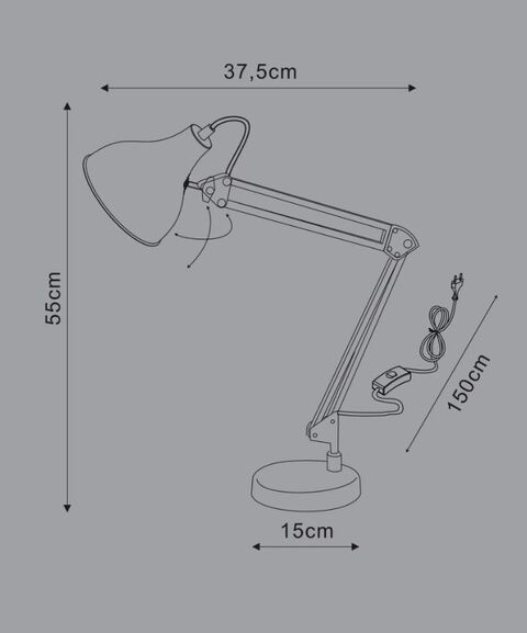 Рабочая лампа ЭНИС оснащена гибким каркасом — угол наклона торшера регулируется по желанию пользователя.