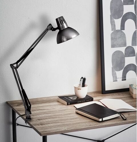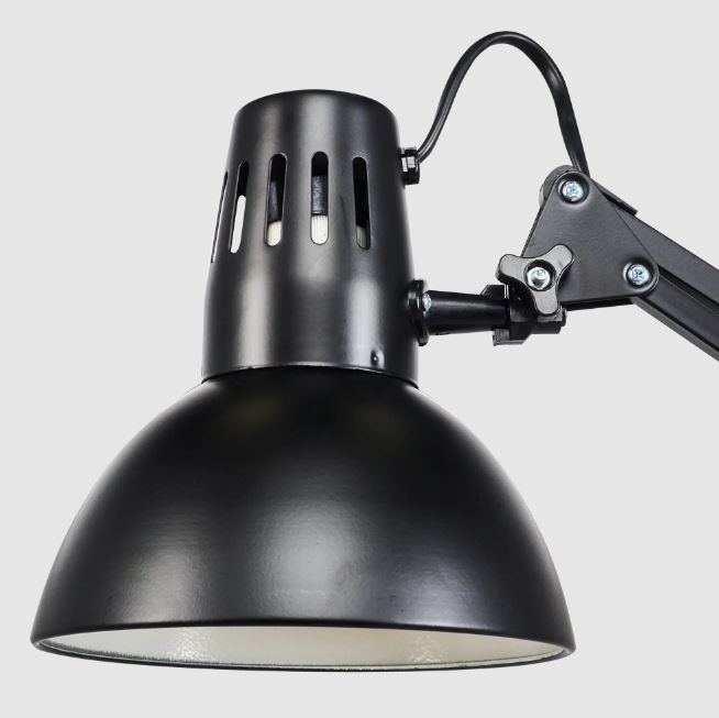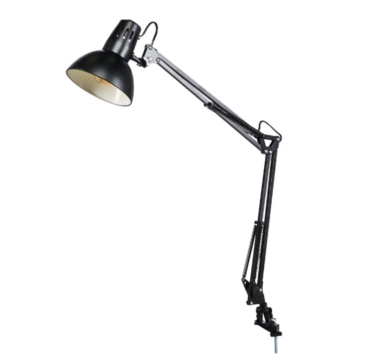 Рабочая лампа на струбцине КАМЕЛИОН черного цвета служит для освещения рабочего места дома и в офисе. Стильный дизайн светильника украсит интерьер, оформленный в любом стиле.