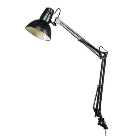 КАМЕЛИОН, рабочая лампа на струбцине, Е27, металл, черный