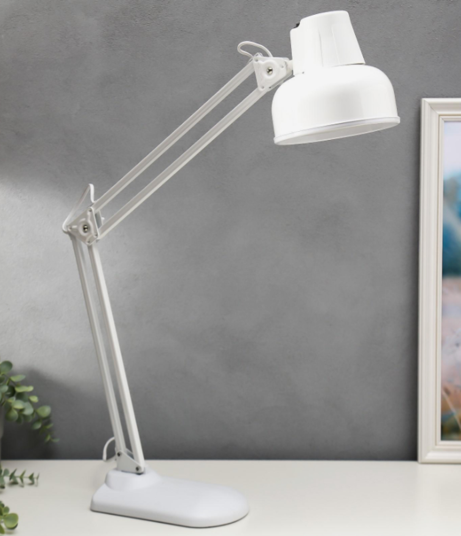 Светильник настольный с основанием "Бета +" (Е27, 60 Вт, 220 В) белый Вид лампы - Накаливания; Количество ламп - 1; Цоколь - E27; Длина, см - 15; Высота, см - 35; Мощность на цоколь, Вт - 60; Лампа в комплекте - Нет; Материал основания - Металл; Материал основания - Пластик; Цвет основания - Белый; Тип рассеивателя - Плафон; Тип крепления - На подставке; Оттенок плафонов - Светлые тона; Материал плафонов - Металл; Управление светильником - С выключателем на корпусе; Вид - Классический; Вид - Детский; Тип питания - От сети 220 В;