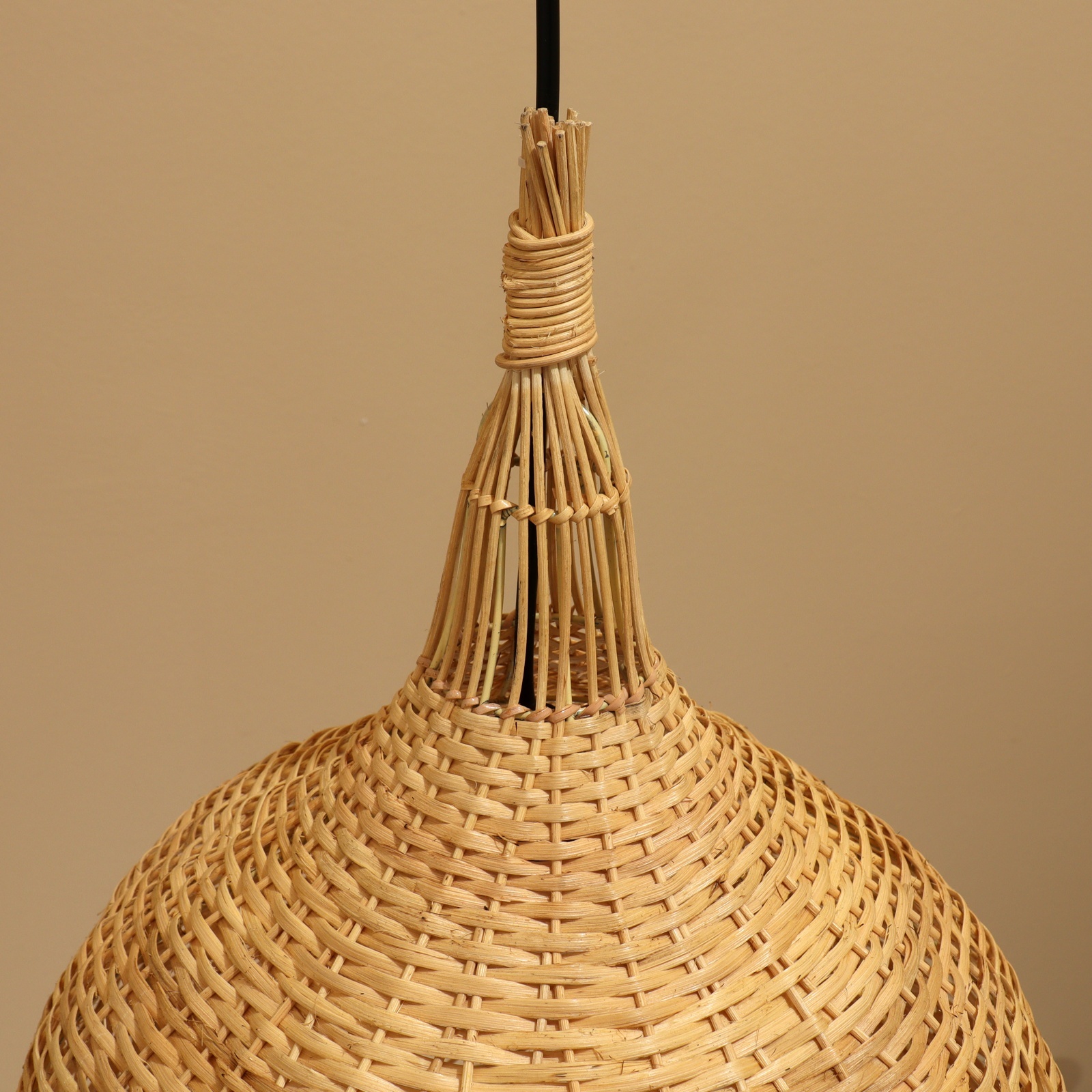 Уникальный стиль. Светильник выполнен из натурального ротанга, придавая ему неповторимый шарм и идеально вписываясь в интерьеры в эко-стиле, бохо или рустик. Его конусная форма добавляет изюминку дизайну.