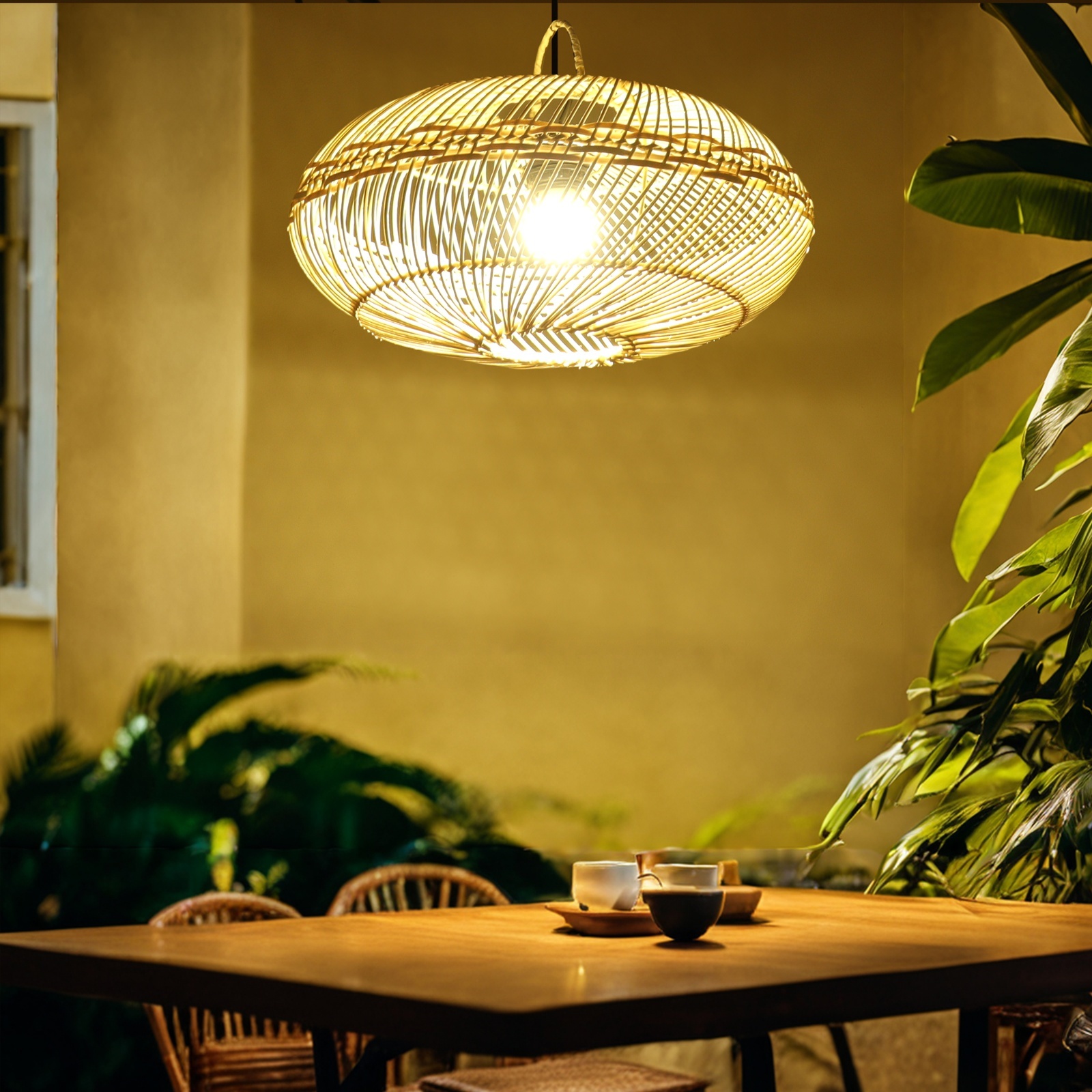Этнический светильник ручной работы сделан из экоматериала — ротанга (очищенных и высушенных стеблей лиан).
