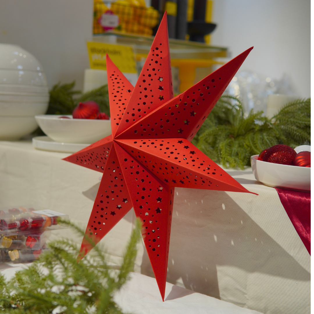 Подвесной абажур в стиле ИКЕА в форме семиконечной звезды станет прекрасным украшением для вашего дома или офиса. Имеет простую конструкцию, легко устанавливается на потолочный светильник. Изделие изготовлено из плотного качественного картона, что обеспечивает долговечность и возможность многократного использования.