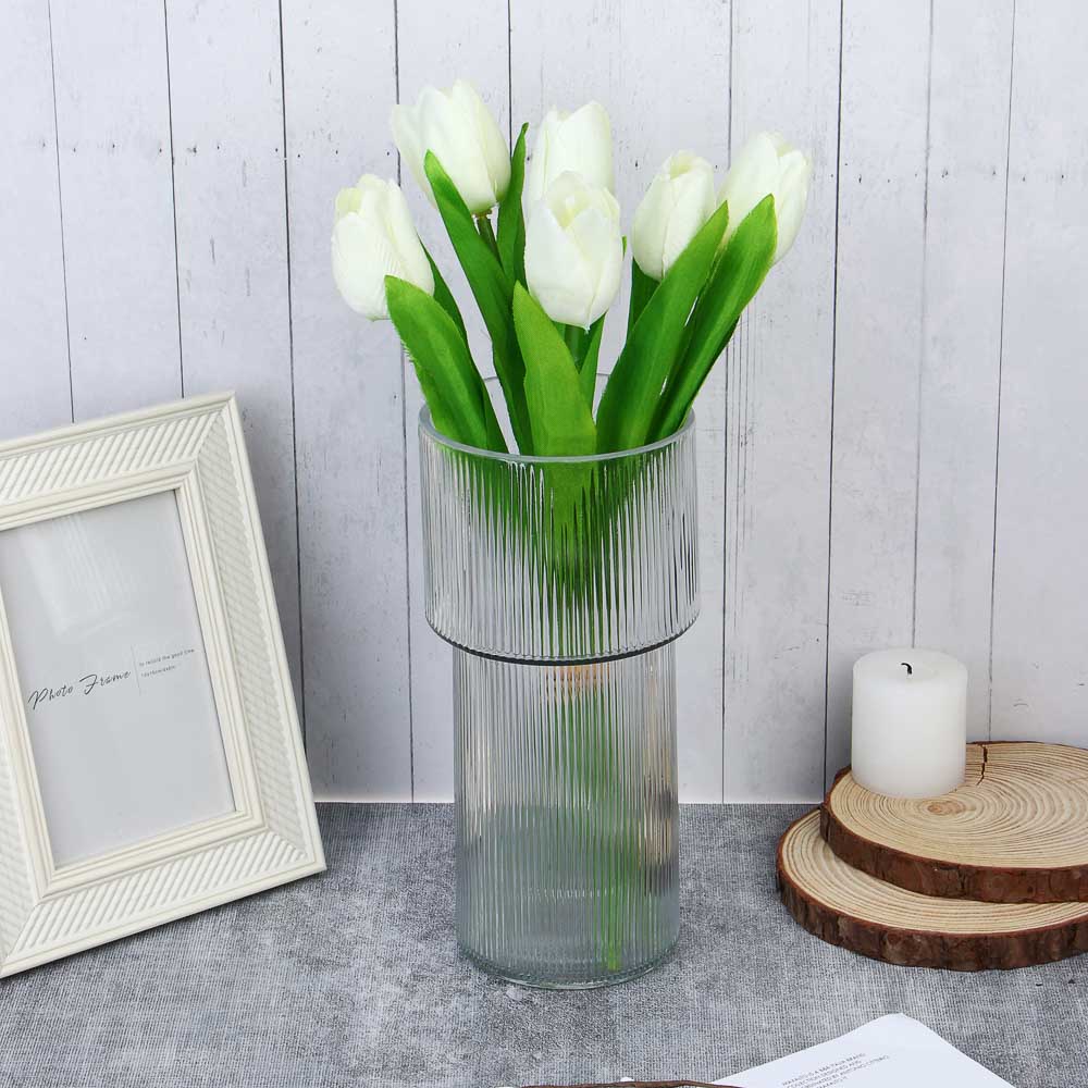 Ваза стеклянная 9х11х23 см – изящный акцент для интерьера. Изготовлена из прозрачного, прочного стекла, сочетает в себе минимализм и современный стиль. Нижняя часть вазы высокая и узкая, верхняя – более широкая, что создаёт эффект визуального контраста и динамики. Поверхность украшена тонкими вертикальными гранями, которые играют со светом, создавая интересные блики и переливы. Отлично подойдёт как для небольших цветочных композиций, так и для декоративных элементов (сухие ветки, палочки, свечи). Прозрачное стекло позволяет видеть содержимое, а также подчёркивает естественную красоту цветов. Легко моется, не впитывает запахи и сохраняет блеск долгие годы.
