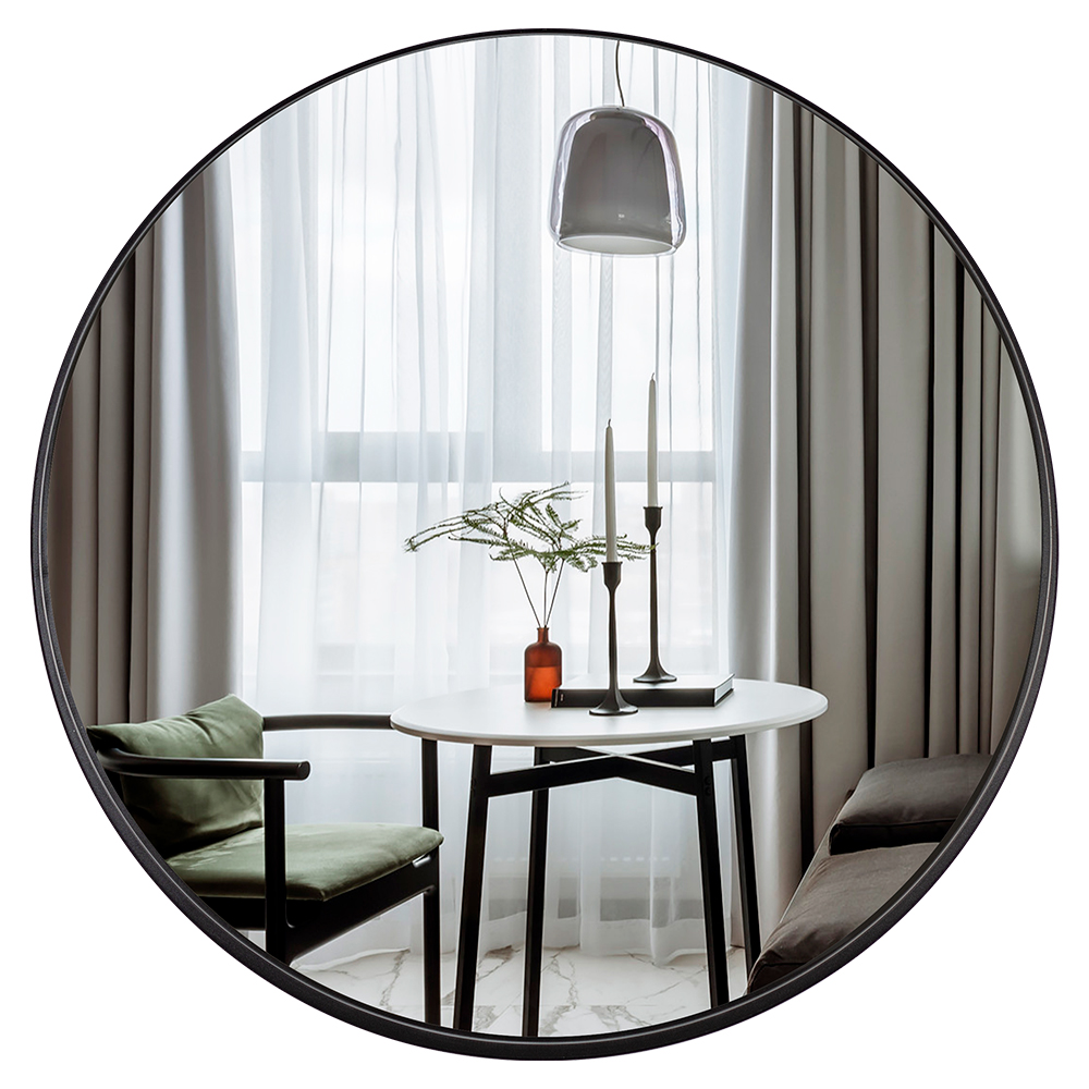 Зеркало настенное в круглом корпусе из металла,d=50,5см, "Чёрный Рубин"