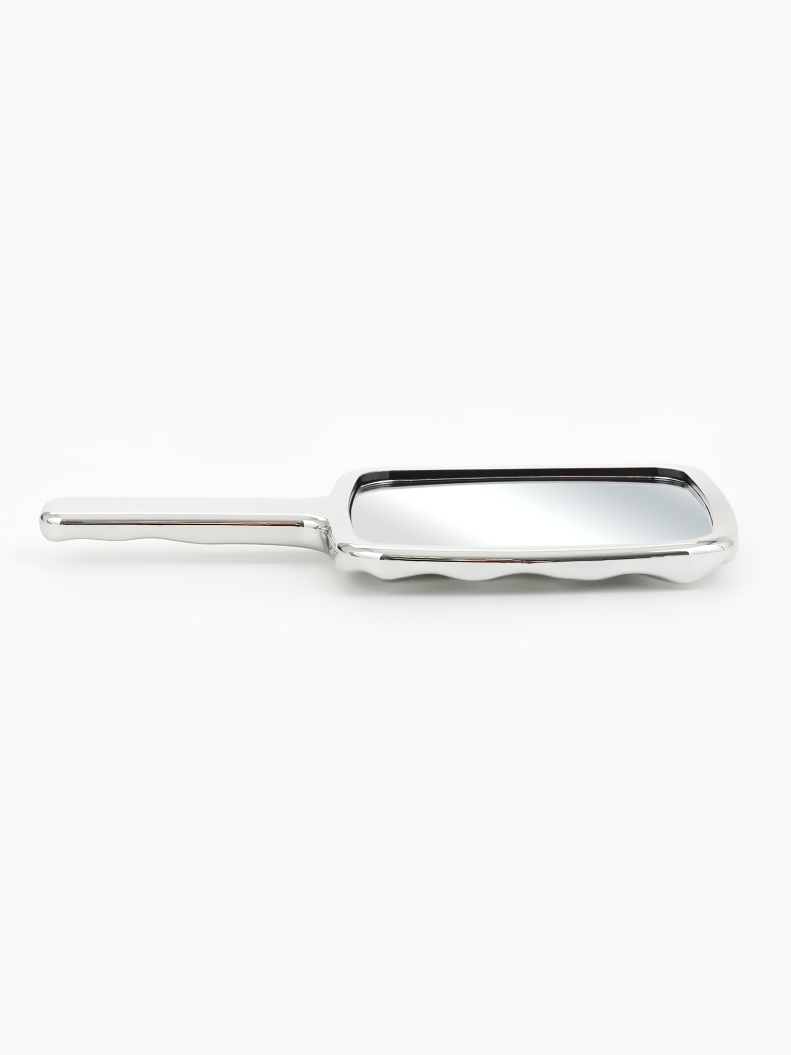 Компактное квадратное зеркало в серебристой рамке станет полезным помощником для ежедневного ухода за собой. Удобная ручка облегчает использование, а небольшие размеры делают его практичным решением для ванной комнаты, поездок или хранения в косметичке.