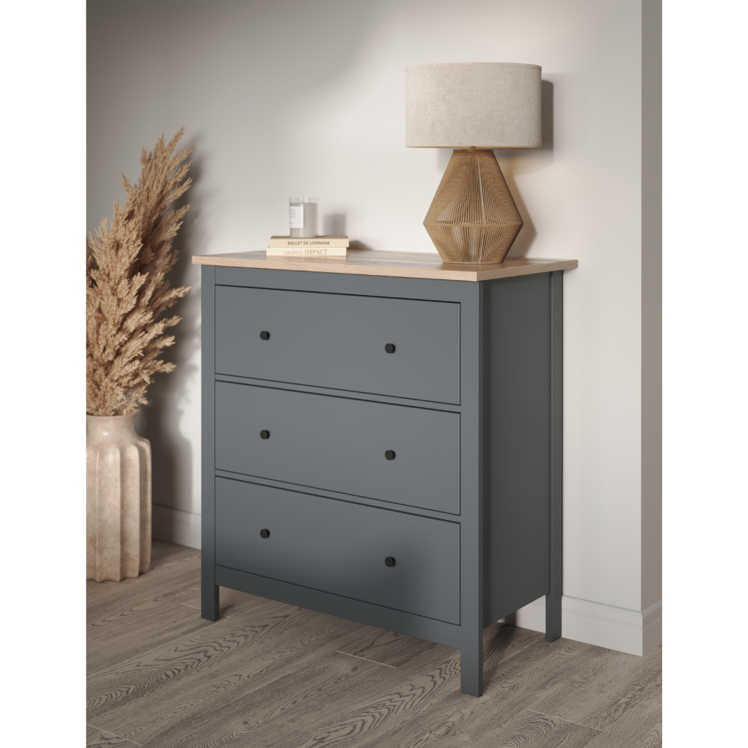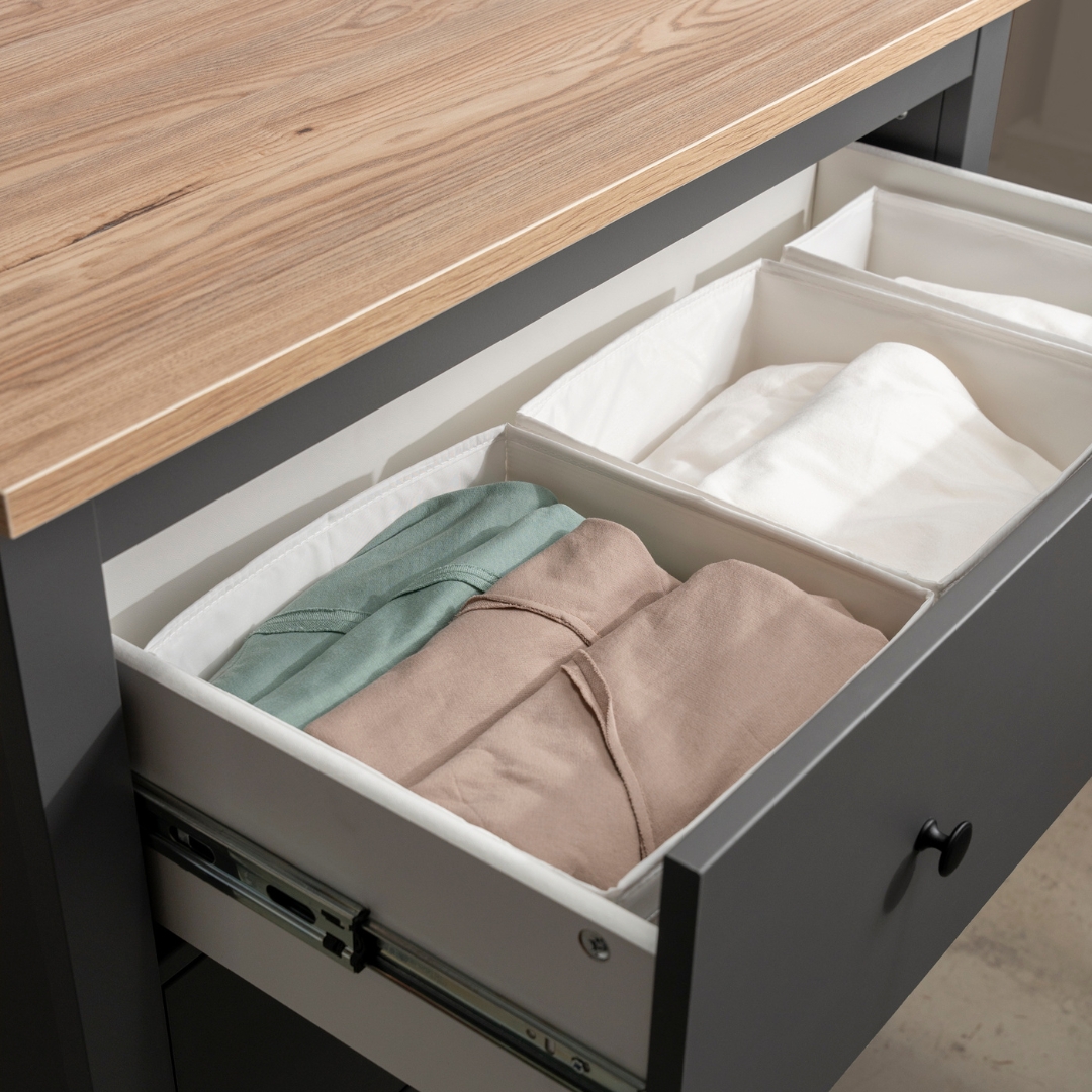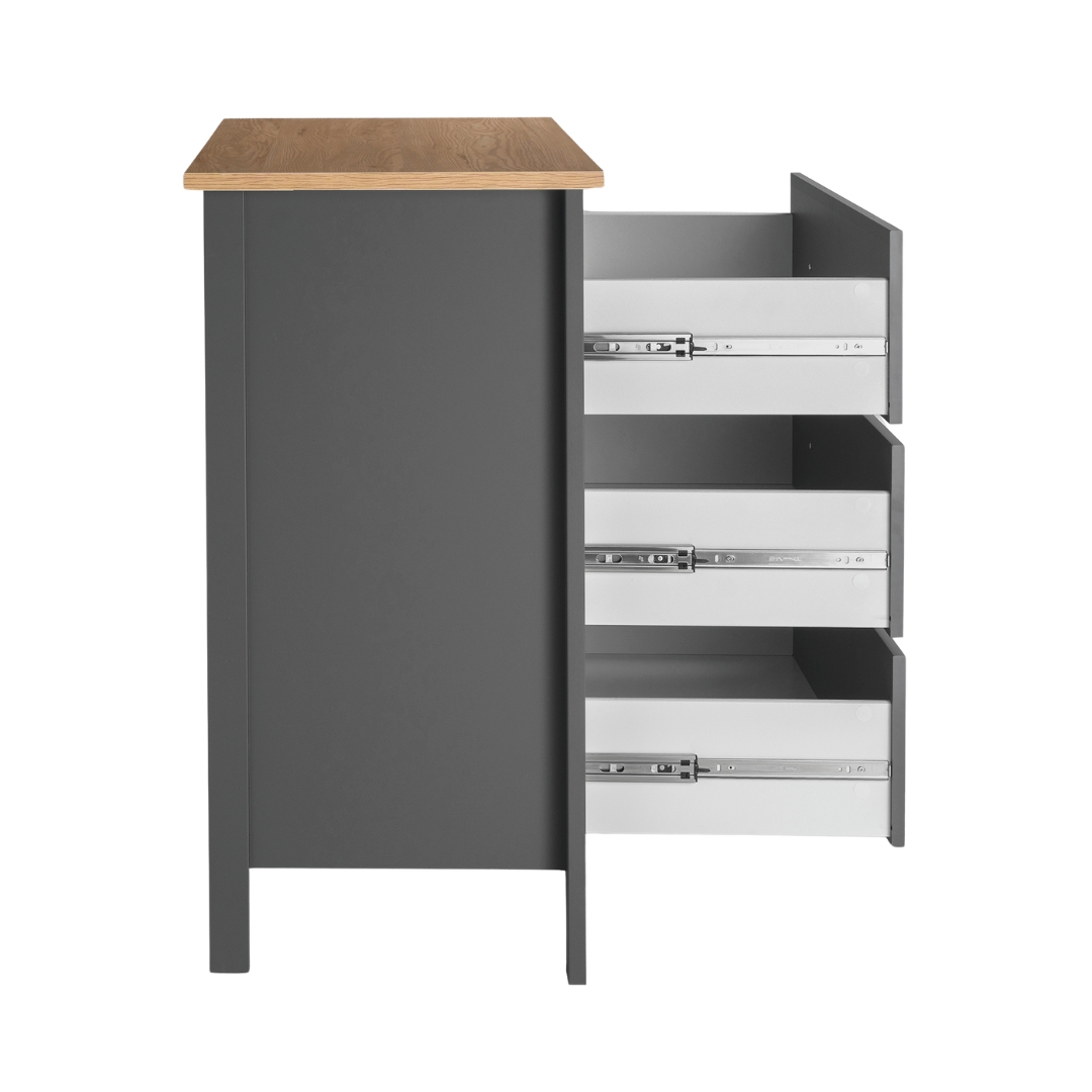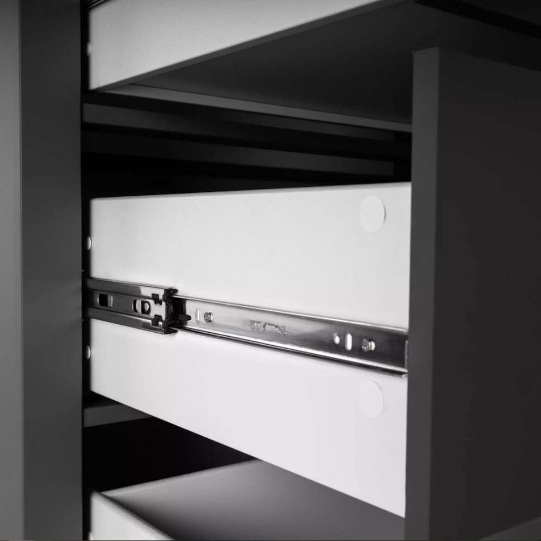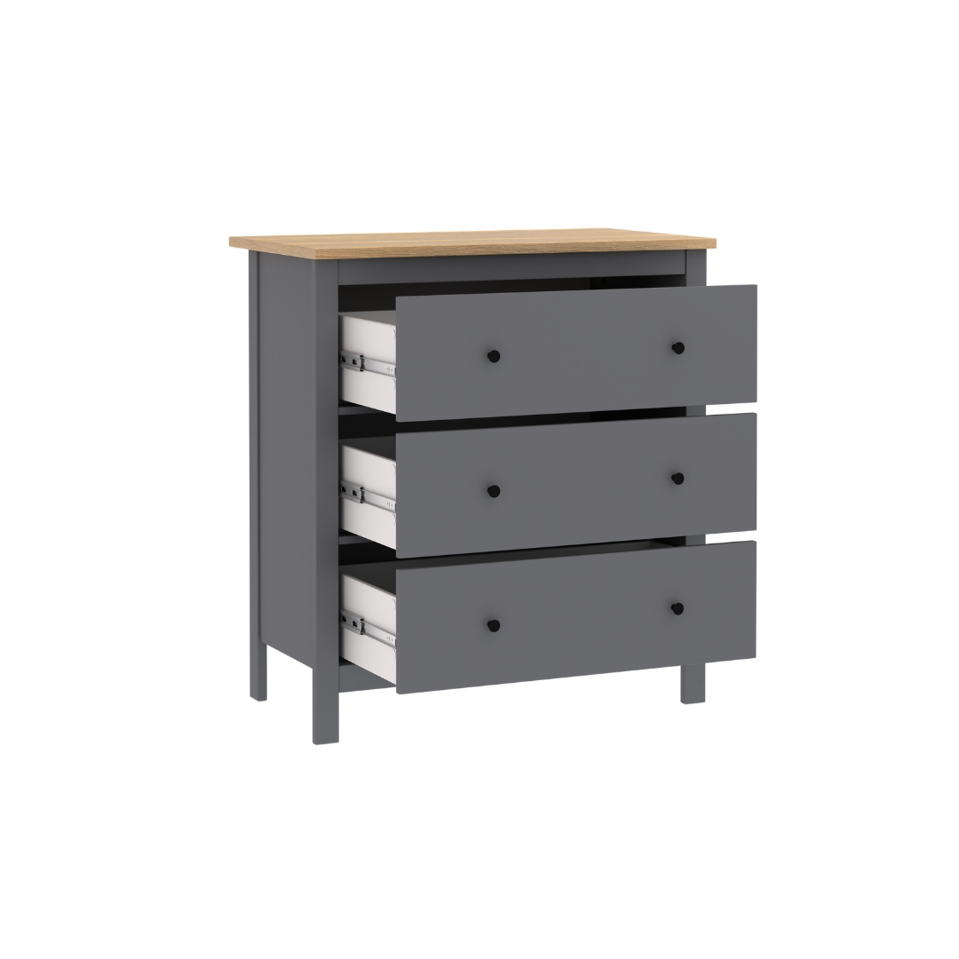 Комод САГА 92х101 см — это элегантное и функциональное решение для хранения, которое сочетает в себе стиль, практичность и продуманный дизайн. Он оснащен 3 вместительными ящиками. Каждый ящик оборудован направляющими полного выдвижения с доводчиками, которые обеспечивают плавное, бесшумное и легкое открывание.