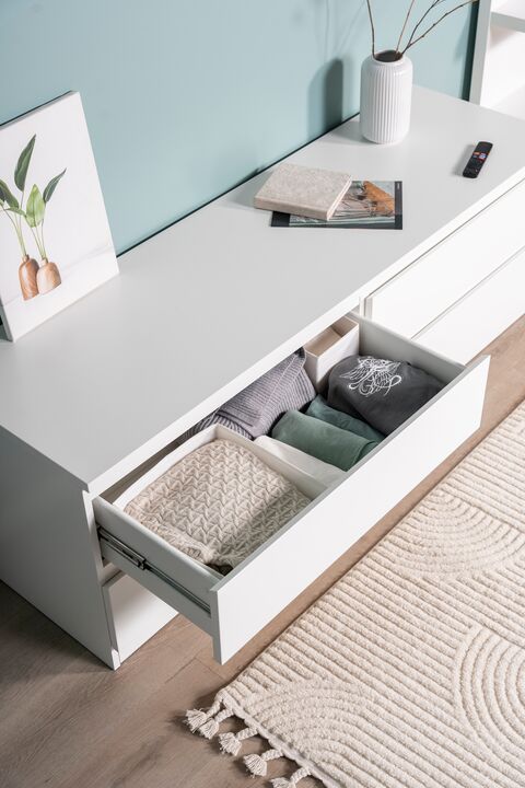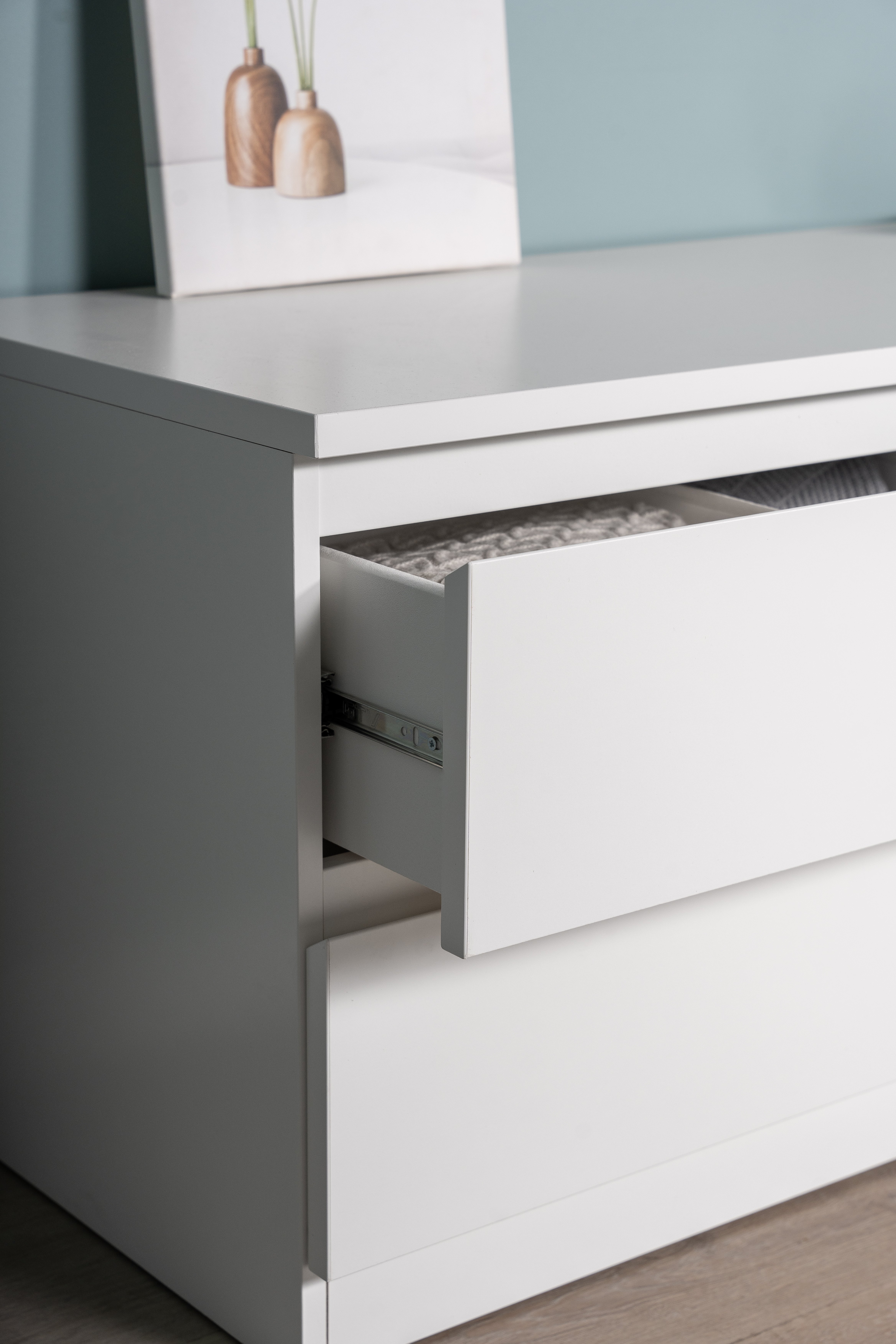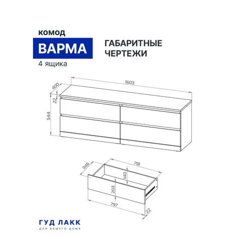ГУД ЛАКК - знакомая мебель, которую легко купить и собрать! В широком комоде ВАРМА молочного цвета любители минимализма легко узнают верного шведского друга сериии МАЛЬМ ИКЕА. Продуманный до мелочей дизайн комода прекрасно впишется в гардеробную, спальню или гостиную. Комод ВАРМА не занимает много места и при этом достаточно вместительный, а гладкий фасад без ручек придется по душе поклонникам практичности. Может быть использован как самостоятельный предмет мебели, так и в качестве подставки для телевизора. Товары ГУД ЛАКК изготовлены на современных фабриках в Беларуси, которые производили мебель для широко известной шведской сети гипермаркетов IKEA. По отзывам наших покупательниц, со сборкой без проблем справится женщина при наличии шуруповерта. Обратите внимание, что ящики в комоде без доводчиков. Рекомендуем протирать тканью, смоченной мягким моющим средством.
