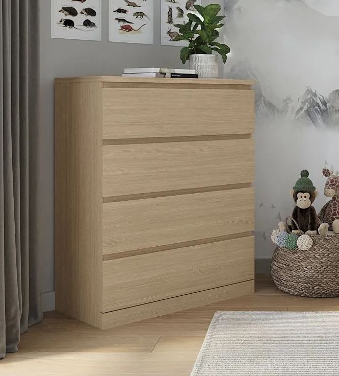 ВАРМА, комод, 4 ящика, 80х100 см, натуральный шпон, дуб беленый
