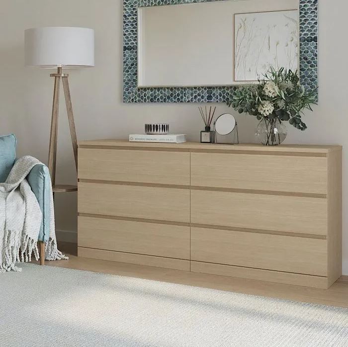 Комоды и стеллажи серии VARMA / ВАРМА представлены в окрашенном эмалью и шпонированном вариантах. Поверхность из натурального шпона подарит возможность при каждом прикосновении чувствовать фактуру настоящего дерева. Является аналогом стеллажей БИЛЛИ от ИКЕА