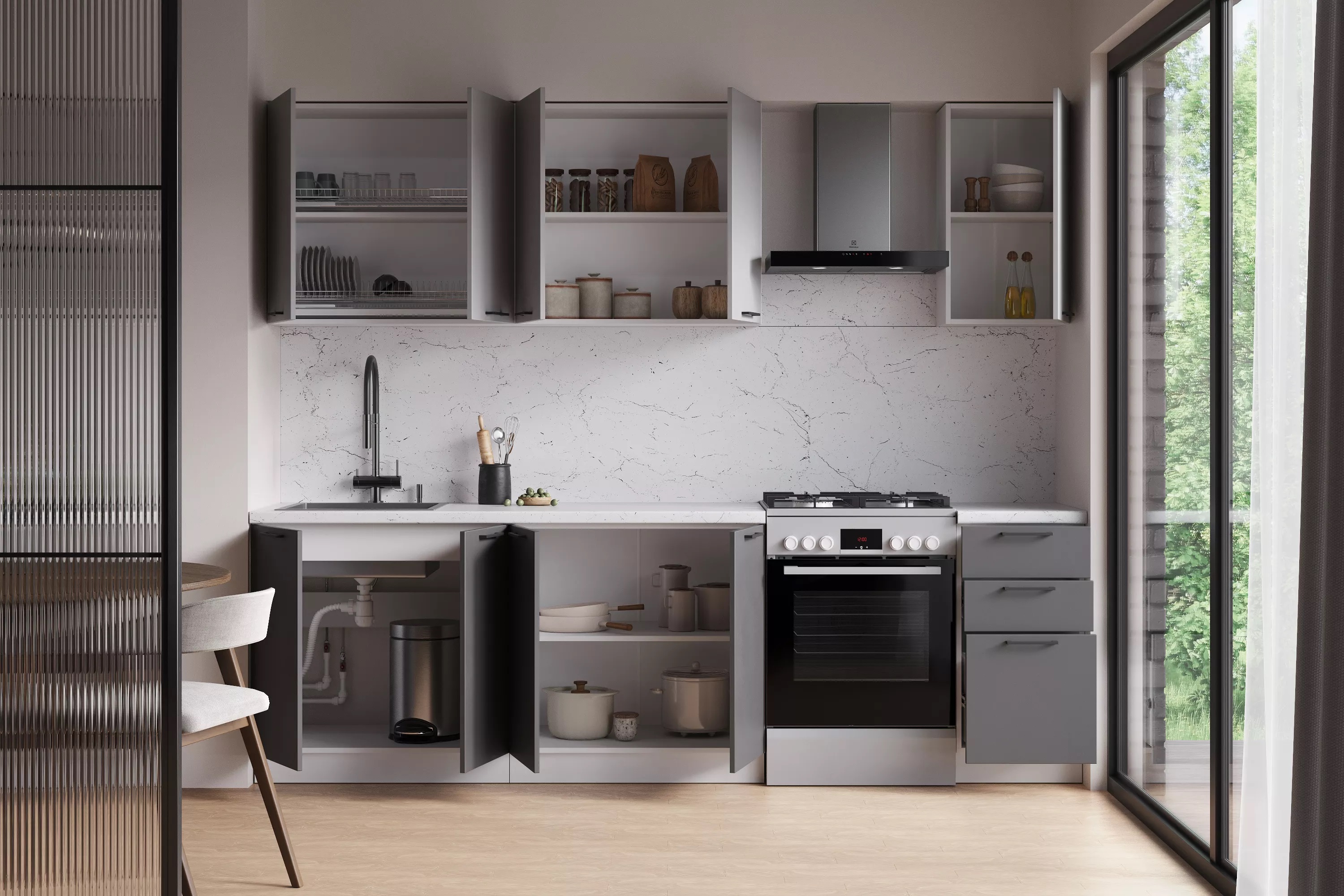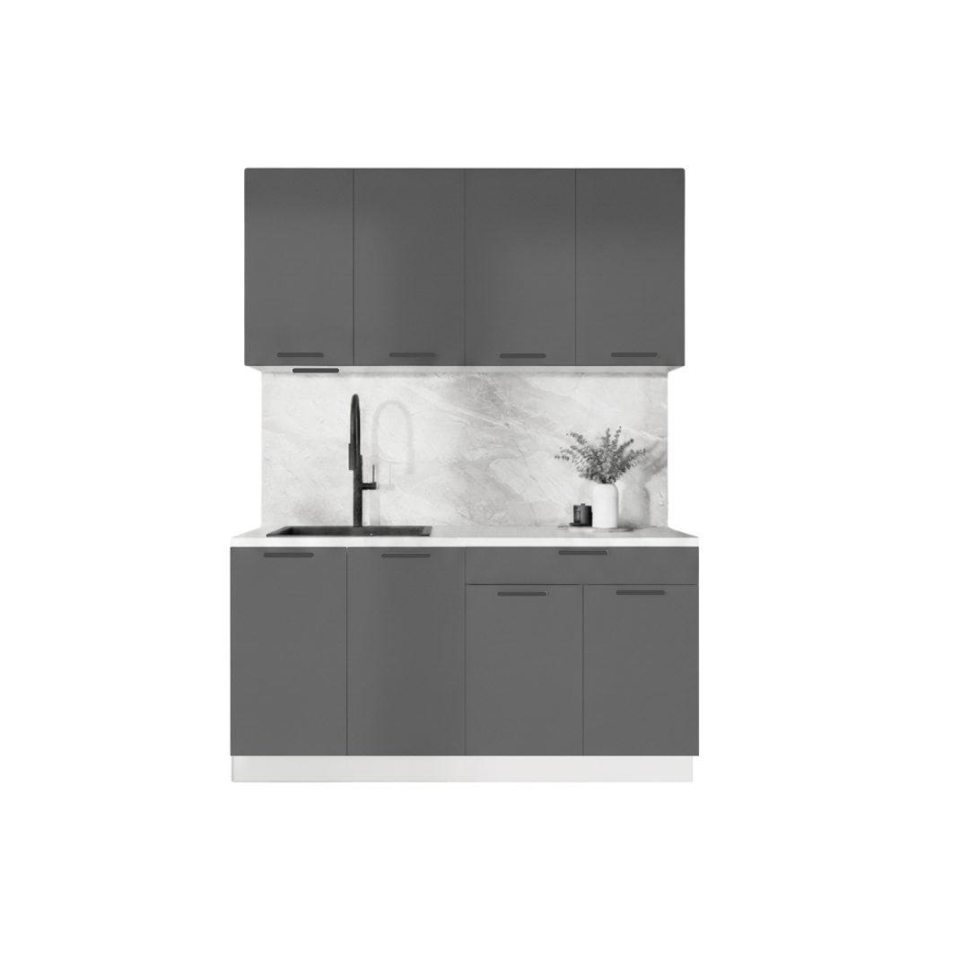 ГАРДЕН, готовая кухня, 1,6 м, столешница 160 см, фасады мдф, графит софт/мрамор марквин